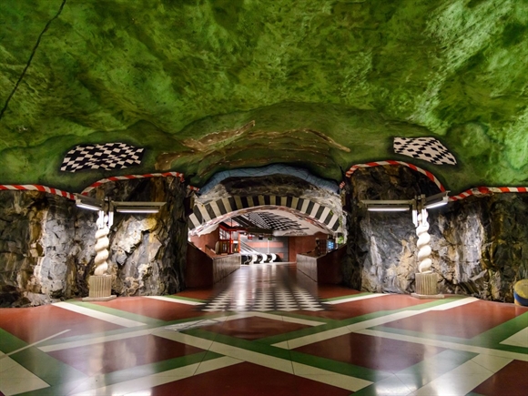 Ngoài ra, Stockholm còn có nhà ga T-Centralen – có thể không giống bất kỳ nhà ga thông thường nào, nhưng ngay khi bạn bước vào bên trong, bạn sẽ bắt gặp những sân ga màu xanh sáng và lát đá trắng.
