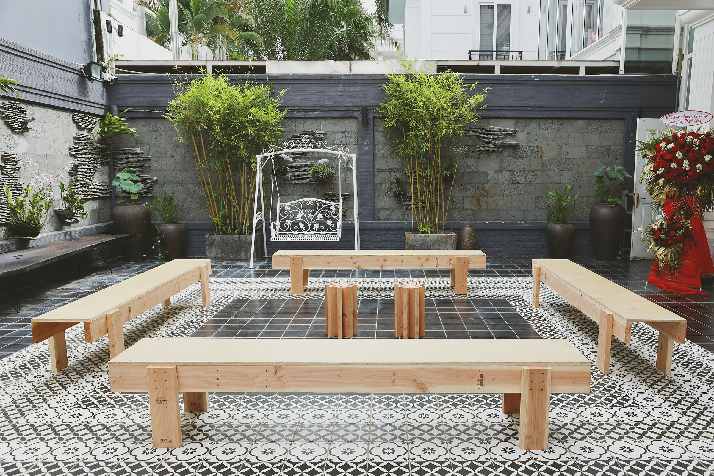 Khác với nhiều triển lãm nội thất chỉ tập trung vào sản phẩm hoàn thiện, MoD sử dụng cả vật liệu thừa để chế tác ghế và bàn đọc sách, kệ trưng bày mô hình, ghế băng nghỉ chân, đôn, ghế bành nhỏ… hỗ trợ cho công tác vận hành của triển lãm. Có thể thấy rằng chính nhờ những vật dụng này mà các không gian như sân chào đón được sắp đặt lại cho buổi tối khai mạc triển lãm, hay phòng lớn 3 được thiết lập dã chiến cho buổi ra mắt sách được biến đổi một cách thú vị như thể dành riêng cho các sự kiện này. Điều này tạo ra một mạch thống nhất giữa khâu tập hợp – trưng bày – vận hành – trải nghiệm, đồng thời tiết giảm lãng phí vật liệu. Cách làm này phản ánh một thái độ rõ ràng: thiết kế không chỉ là vật thể cuối cùng mà là toàn bộ quá trình dẫn đến nó. MoD nghiêm túc đặt ra câu hỏi về vòng đời vật liệu, hệ sinh thái sản xuất địa phương và tính bền vững của thực hành trưng bày và vận hành triển lãm.