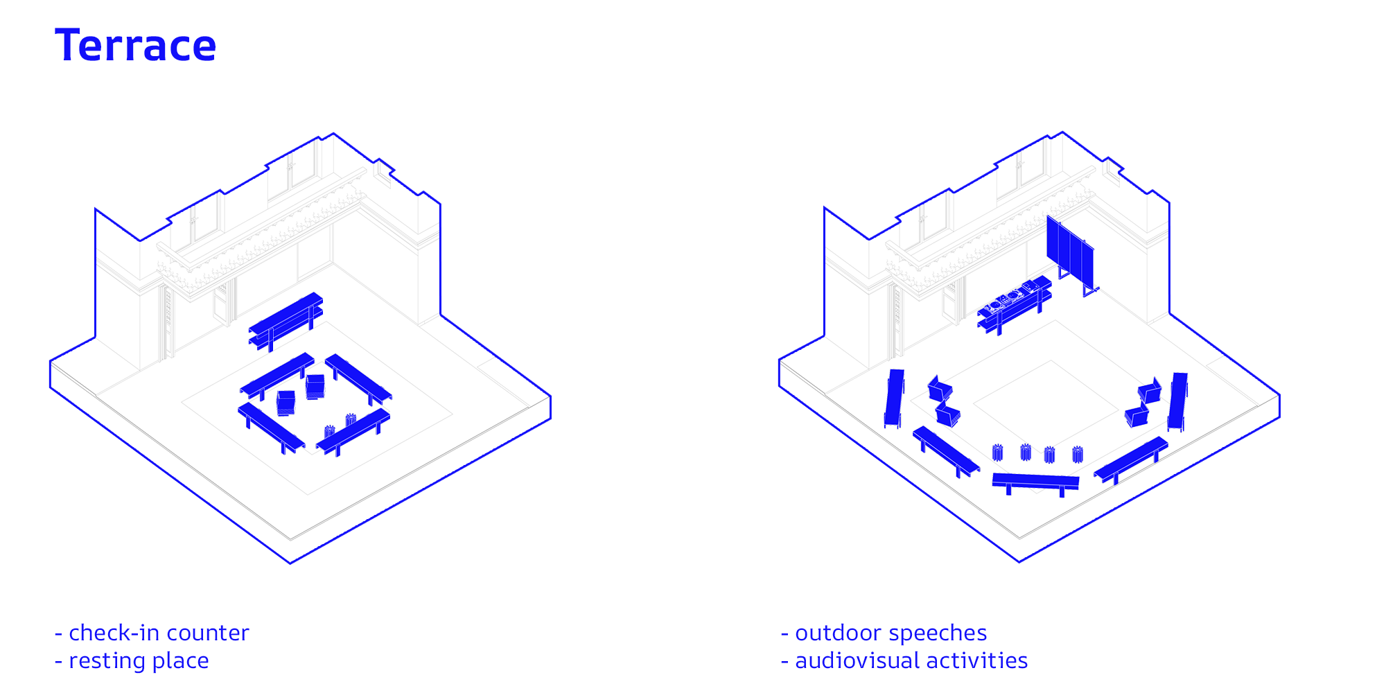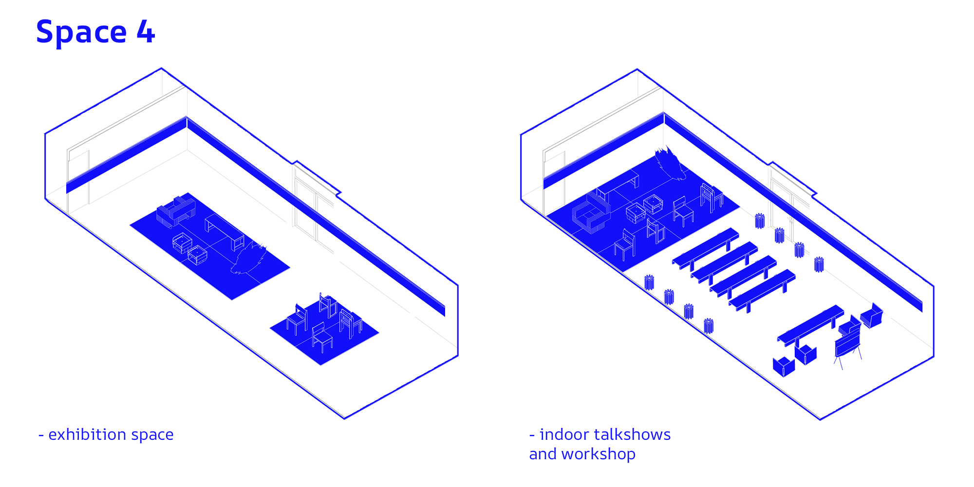 Triển lãm bao gồm 4 phòng chính được đặt trong một căn biệt thự nhiều tầng, một không gian vốn dành cho trưng bày các tác phẩm hội họa hơn là thiết kế, nhưng chính điều này mở ra tiềm năng để MoD thực hành tư duy phê phán và thích ứng với bối cảnh, đây cũng là căn tính của một bảo tàng phi tập trung như MoD. Không gian hiện hữu được “đọc lại” và tạo một “lớp mới” nhạy cảm và tiết chế để “thương lượng” lại “lớp hiện hữu”. Những căn phòng với tỷ lệ chênh nhau, hành lang hẹp, góc mở bất ngờ, hay những cầu thang ánh sáng gián tiếp, tất cả trở thành một cấu trúc dẫn dắt nhịp điệu và cảm xúc của khách tham quan.