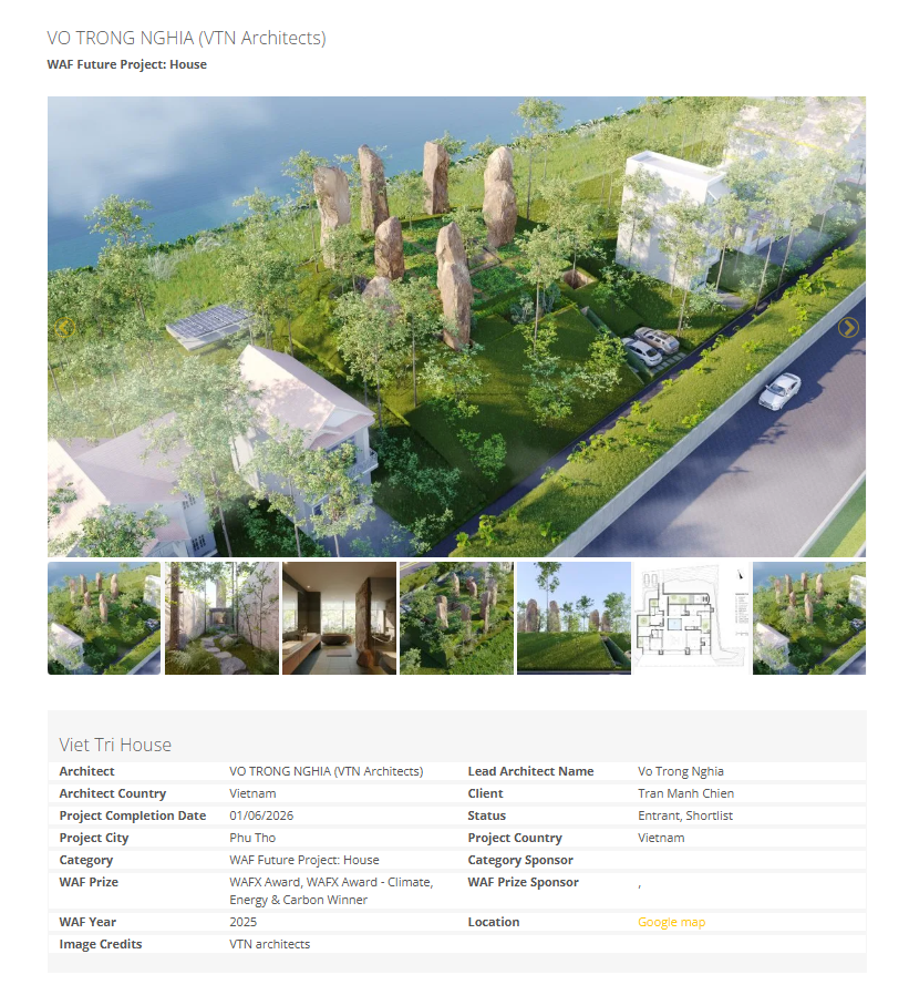 Ashui.com giới thiệu hình ảnh các công trình của VTN Architects đã lọt vào chung kết của Liên hoan kiến trúc thế giới – WAF 2025: