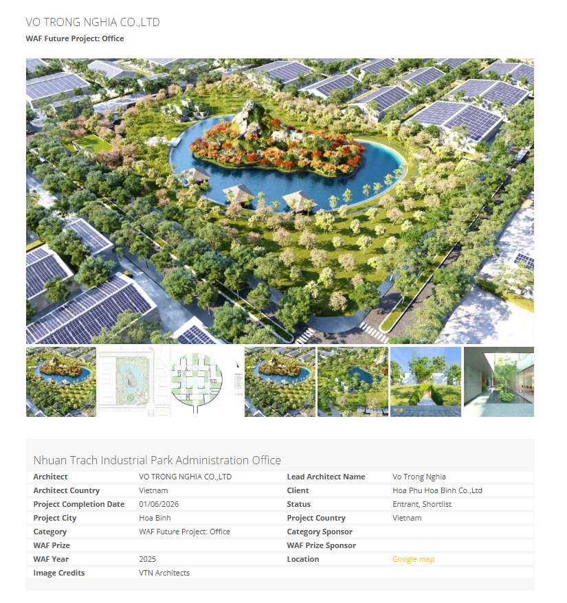 Các công trình lọt vào shortlist của Liên hoan kiến trúc thế giới 2025 (WAF 2025) được công bố chính thức tại đây: https://worldarchitecturefestival.com/worldarchitecturefestival2025/en/page/shortlist-2025