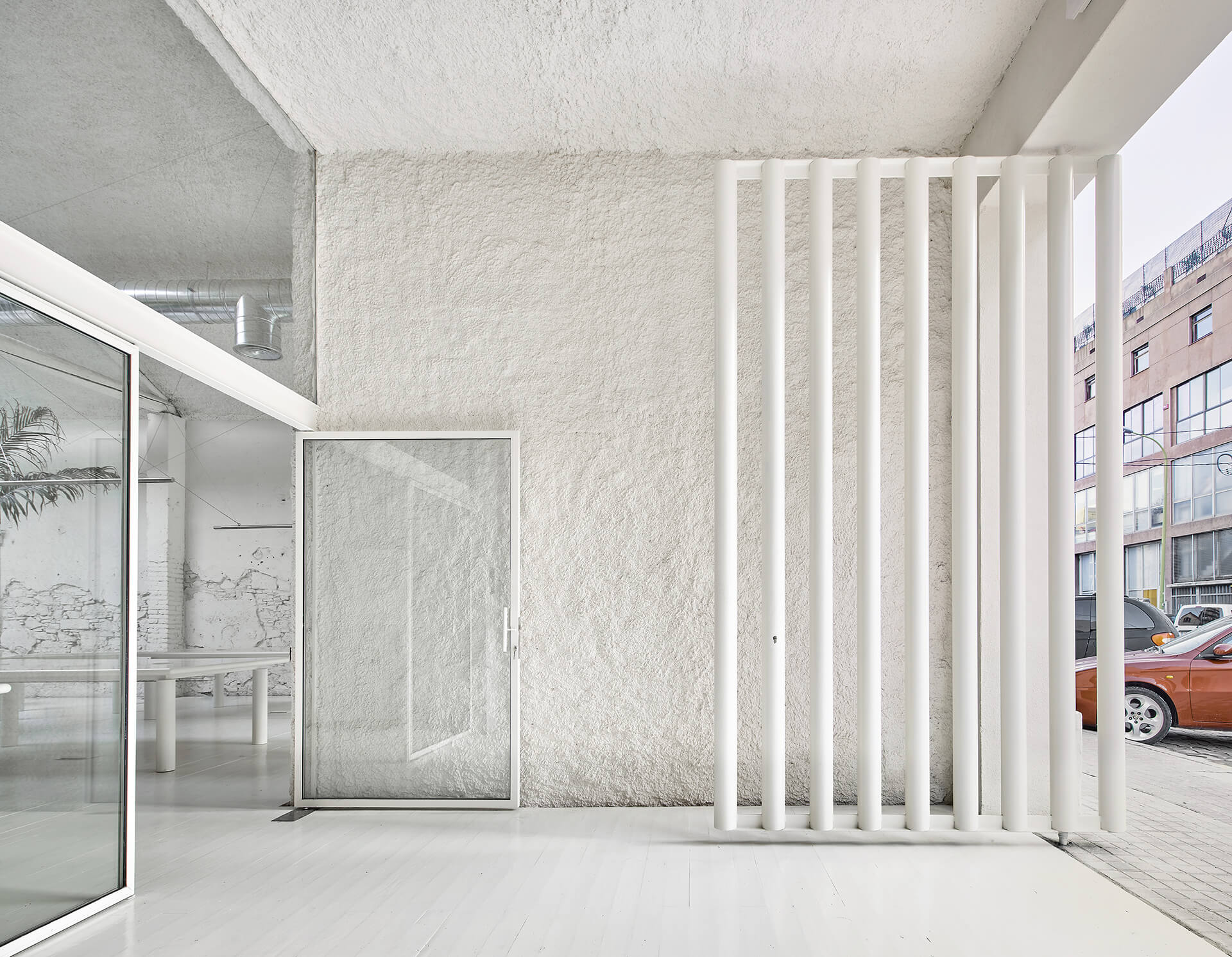 Các nhà thiết kế quyết định sơn trắng tất cả mọi thứ từ tường cho tới đồ nội thất để đảm bảo tính thống nhất về trực quan. Tuy nhiên những vách kính và sàn gỗ hay thạch cao và gạch vẫn được kết hợp với nhau, thể hiện sự kế thừa và tiếp nối những giá trị kiến trúc vốn có.