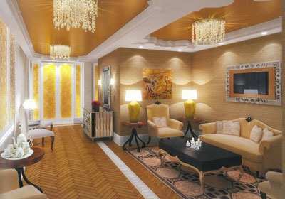 Điểm nổi bật nhất của căn phòng này là bộ đèn trần pha lê, nó chiếm đến gần 80% diện tích của trần. Các bậc tam cấp bằng bạc dẫn lên khu tầng lửng, phía sau hai cánh cửa là phòng trưng bày các kiệt tác nghệ thuật mà nhà tỷ phú sưu tầm được. Ngoài ra còn có một sân khấu nhỏ để phục vụ giải trí. Một khu nhà bếp có kích thước không kém gì chính căn phòng có thể phục vụ hàng trăm thực khách cùng lúc. Ambani còn cho xây hẳn một rạp chiếu phim cỡ lớn gần hết diện tích của tầng với đầy đủ trang thiết bị. Bên ngoài còn có một phòng rượu, một quầy snack bar và không gian giải trí.