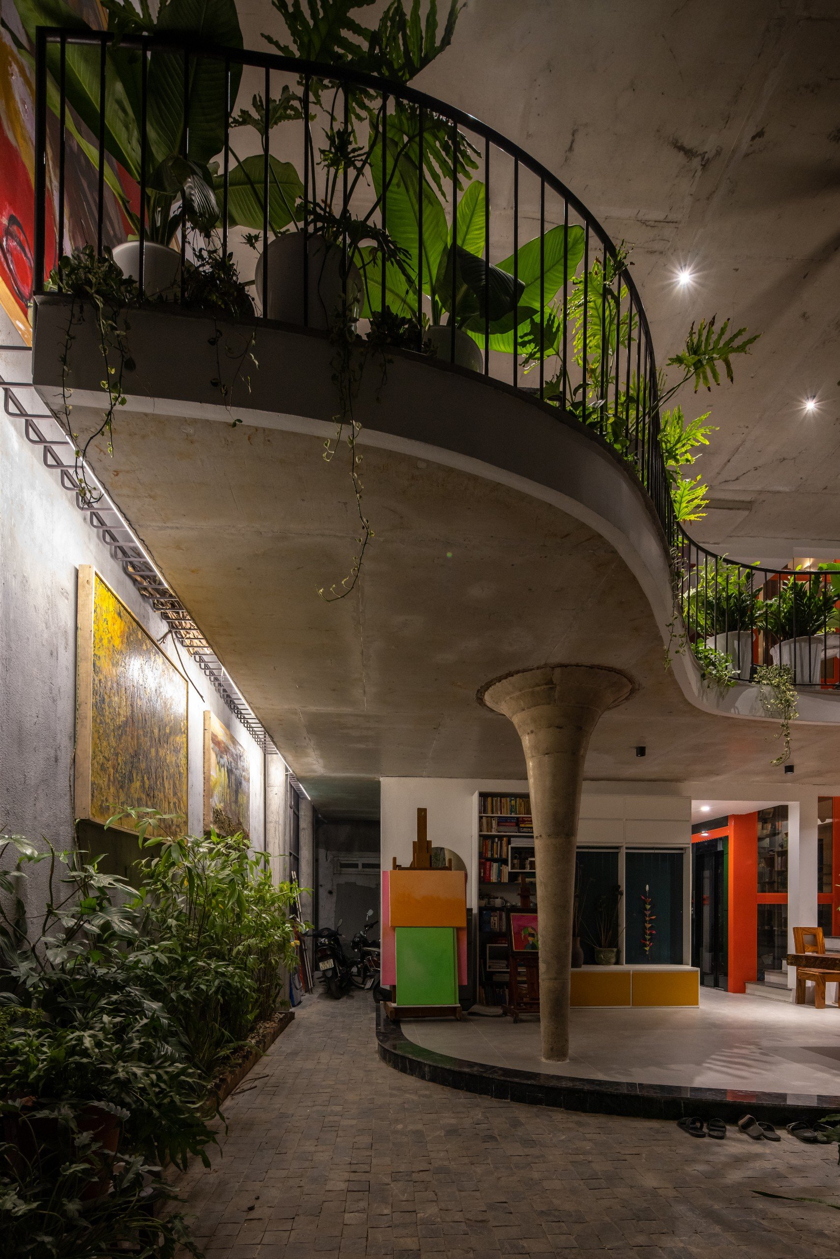 Không gian ở tầng lửng, linh hoạt cho các nghệ sĩ thực hành nghệ thuật.