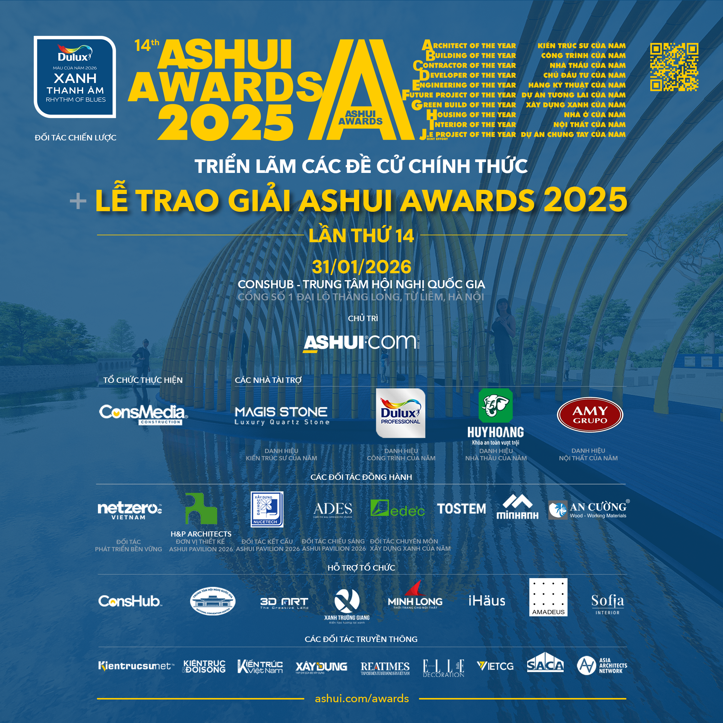 17:00 Khai mạc triển lãm Ashui Pavilion 2026 – giới thiệu các đề cử chính thức và kết quả Ashui Awards 2025 (lần thứ 14)