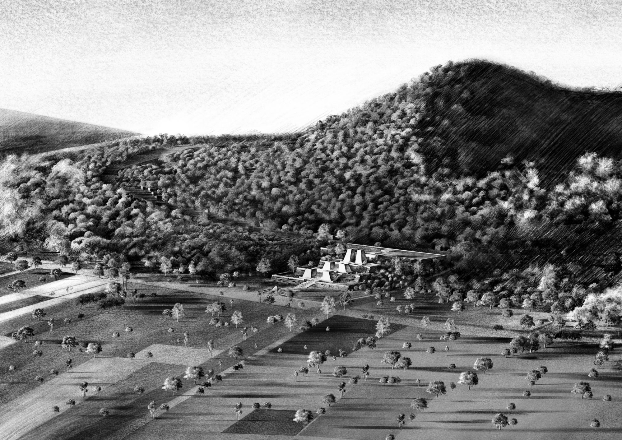Tổng thể nhìn từ xa, bảo tàng như một “gò thiêng” tự nhiên, khiêm nhường nhưng thiêng liêng – biểu tượng cho tinh thần tôn kính quá khứ.