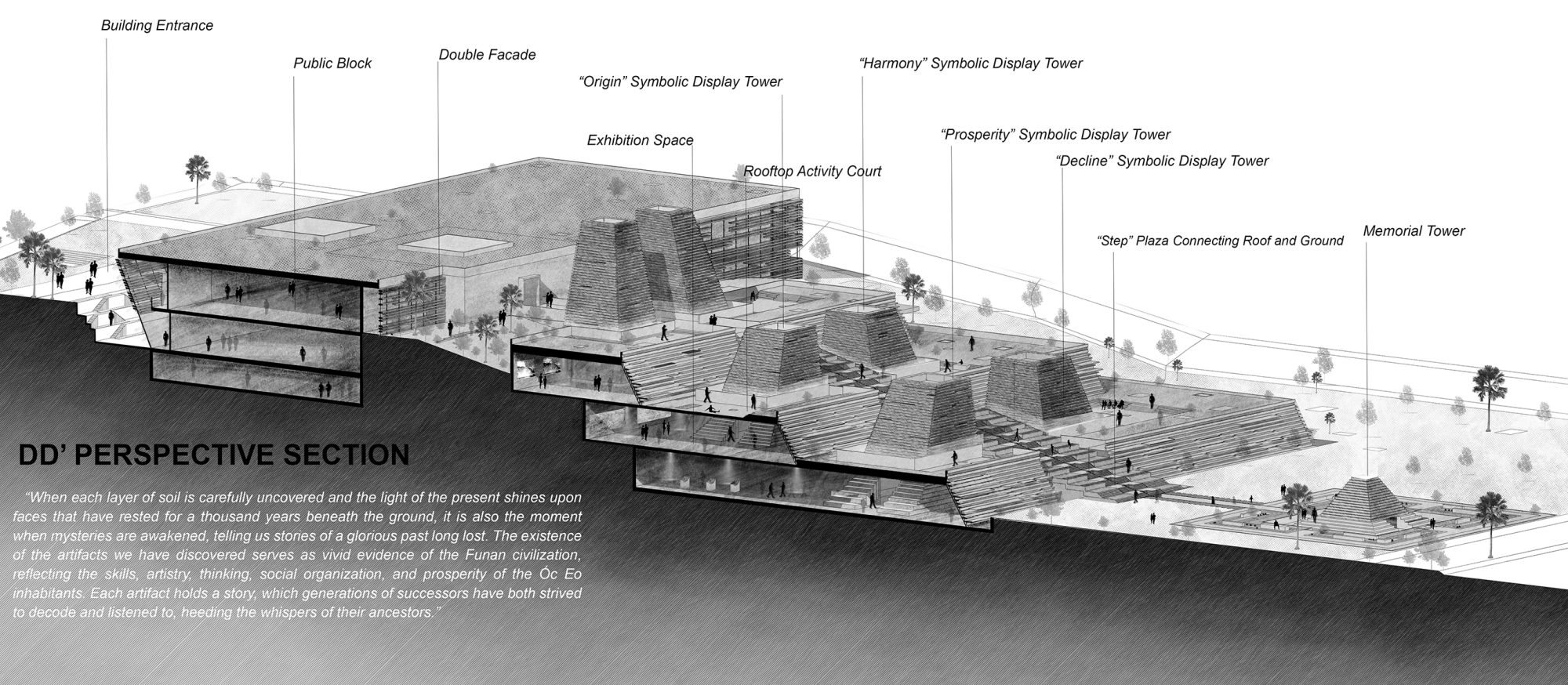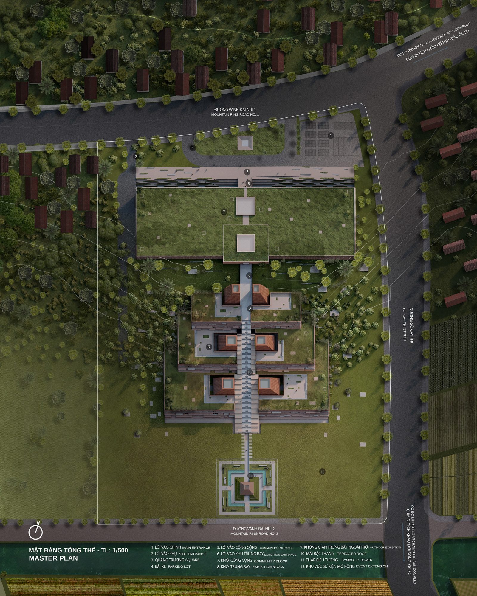 Vấn đề đặt ra khi thiết kế Bảo tàng Óc Eo – An Giang là làm thế nào để kiến trúc đương đại có thể khơi dậy ký ức của nền văn minh Óc Eo, đồng thời tôn trọng và hòa nhập sâu vào cảnh quan sông nước đặc trưng của vùng đồng bằng. Công trình không chỉ lưu giữ di sản khảo cổ, mà còn phải tái kết nối con người hôm nay với mạch văn hóa đã từng hình thành trên chính mảnh đất này. Thách thức nằm ở việc tạo ra một không gian vừa mang tính biểu tượng – kể lại câu chuyện quá khứ – vừa hòa vào thiên nhiên, địa hình và đời sống cộng đồng địa phương. Kiến trúc phải tìm thấy ngôn ngữ dung hòa giữa di sản và hiện đại, biểu tượng và tự nhiên, để bảo tàng trở thành một phần tiếp nối sống động của ký ức Óc Eo trong hiện tại.
