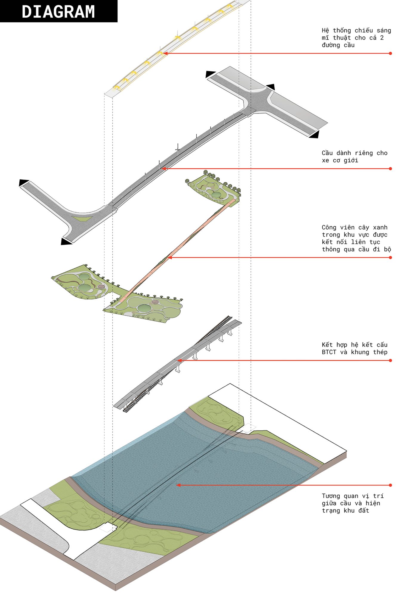 Điểm bắt đầu của phương án thiết kế là một tầm nhìn về những cây cầu không chỉ là nơi lưu thông mà còn là nơi cho các hoạt động văn hóa, giải trí và thương mại.