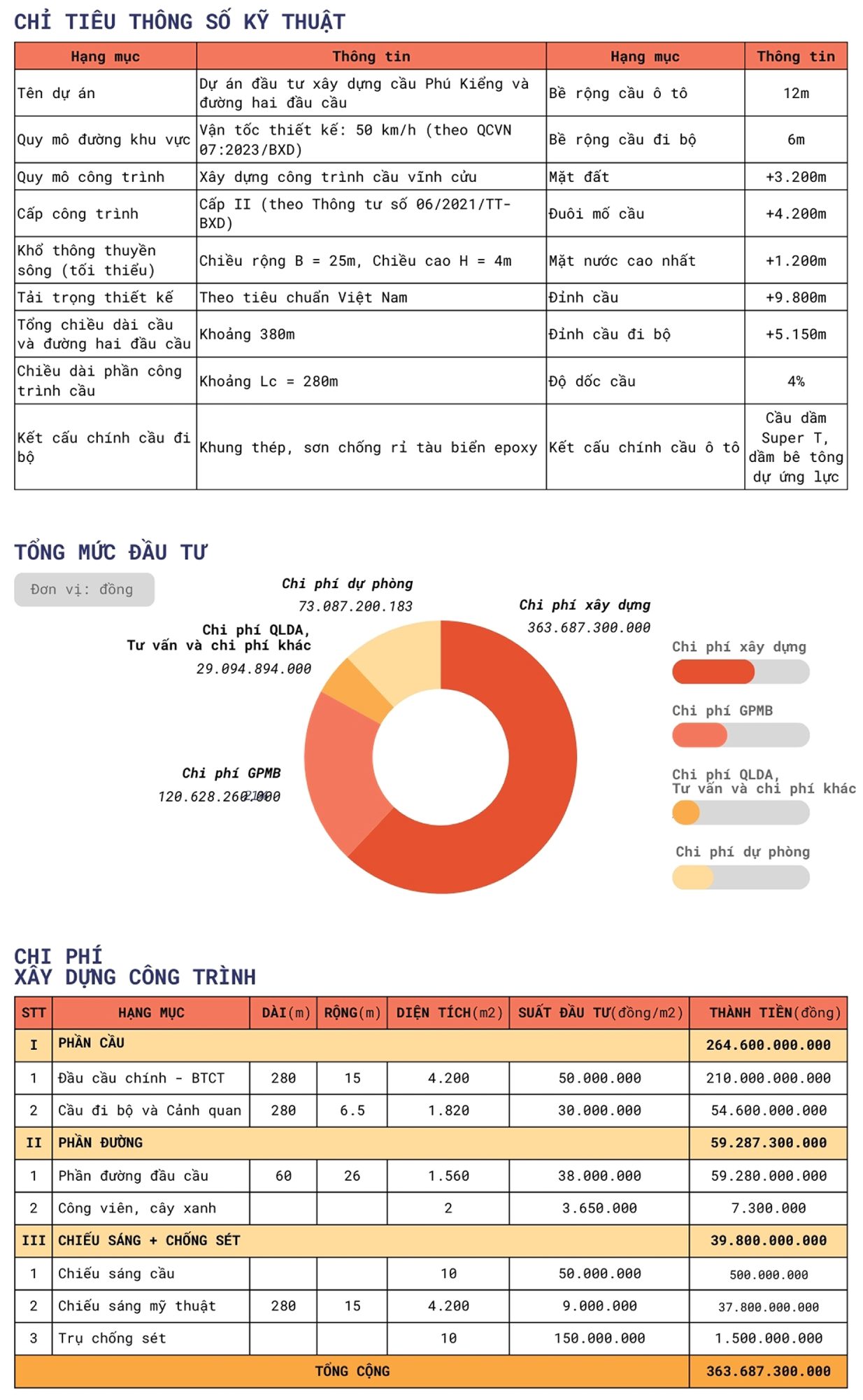 Với tổng chiều dài 380 mét, cầu thực và mối quan tâm về khả năng cung cấp một không gian công cộng gắn kết, yêu thương của người tuyến tính mới (2.300 mét vuông) dân địa phương với nhau thông cho xã Vĩnh Ngọc nói riêng và qua cấu trúc mà nó biểu hiện. thành phố Nha Trang nói chung. Ô tô và phương tiện giao thông Cầu Phú Kiểng mới sẽ từ bỏ mối công cộng sẽ có một làn riêng quan tâm duy nhất về phong cách (rộng 12 mét) để nâng cao tiêu – hình thức mà các cây cầu biểu chuẩn an toàn, người đi bộ và xe tượng của Việt Nam đang hướng đạp sẽ có làn đường riêng, chính tới, để ủng hộ một cam kết có xáclàmộtcâycầu(rộng6mét) tính nhân văn hơn về tính thiết kết hợp với cảnh quan hấp dẫn.