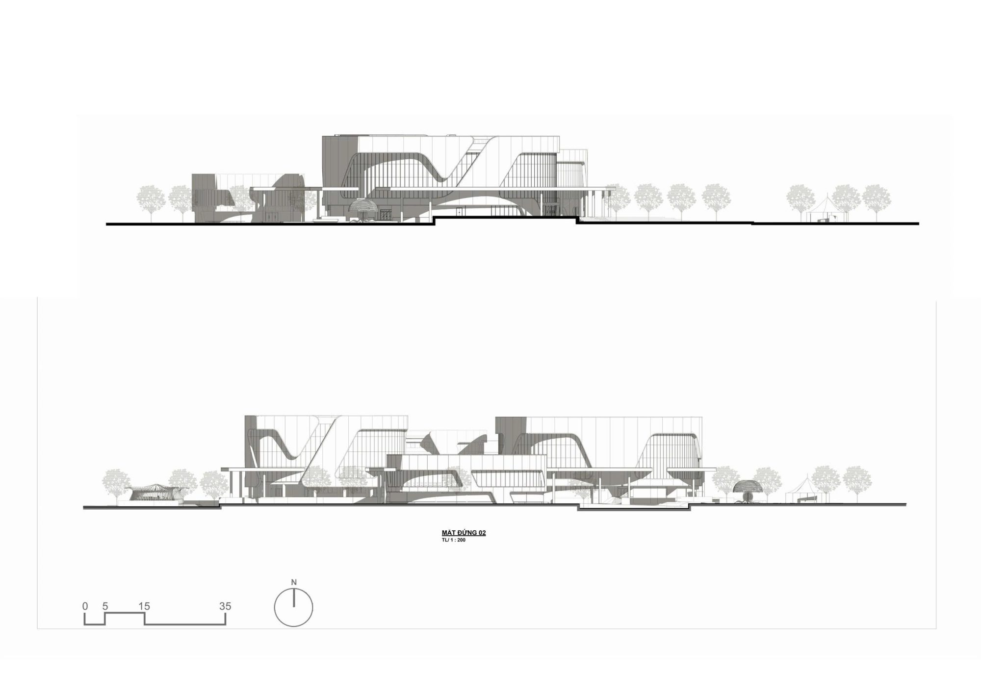 Các đường nét kiến trúc như những cánh chim đang tung bay giữa không trung – hiện diện trong hệ kết cấu khung đỡ hay vách bao che – gợi hình ảnh đàn chim nhỏ tụ hội về một tổ ấm, nơi nuôi dưỡng khát vọng bay xa. Công trình cũng là sự tổng hòa của những nét cong mềm mại, chuyển động linh hoạt như nhánh lá, như mầm chồi vươn lên, biểu trưng cho một môi trường giáo dục đang ươm mầm tài năng, vun bồi những tâm hồn non trẻ.