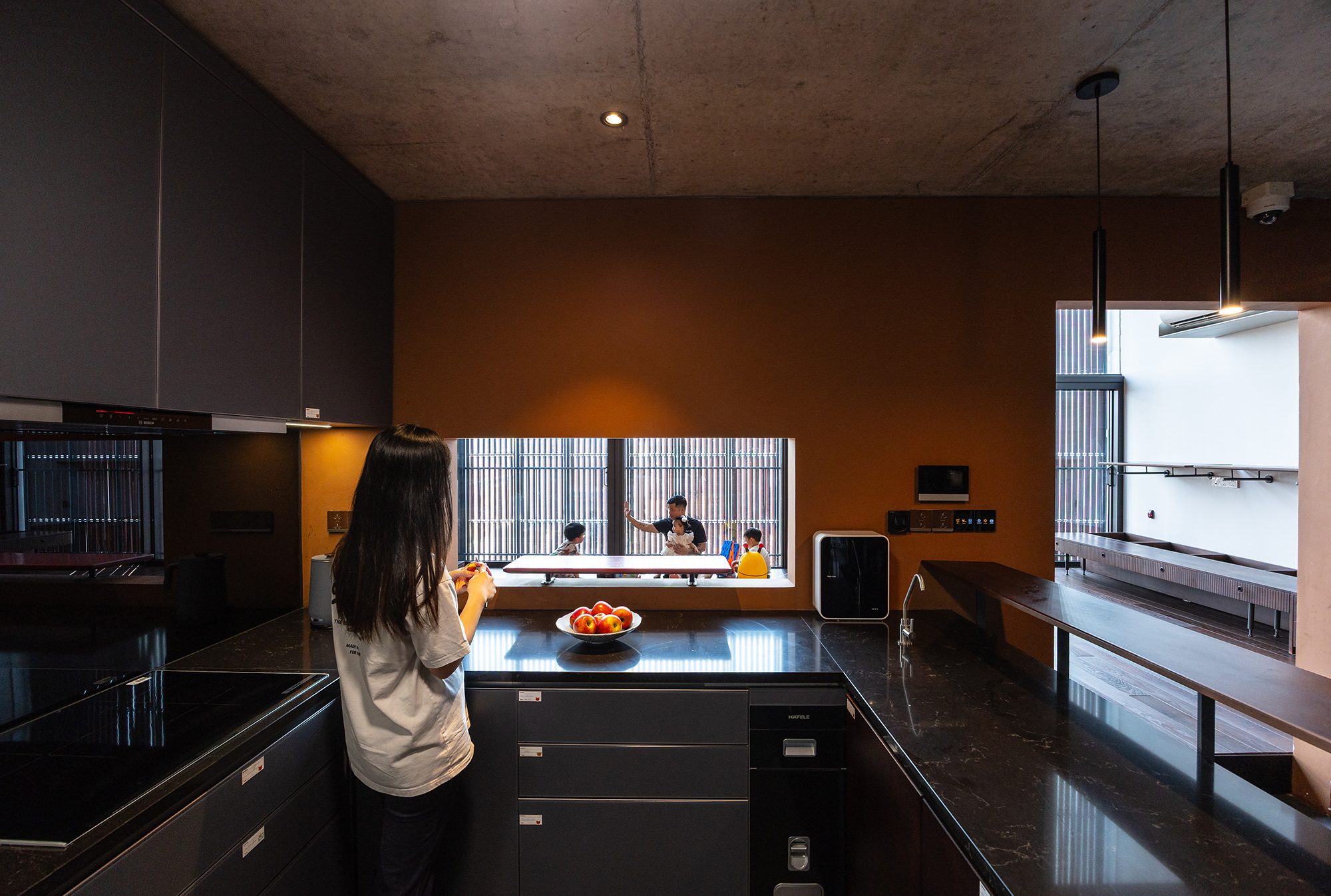 Lấy cảm hứng từ thềm hiên trong kiến trúc truyền thống Việt Nam, chúng tôi kế thừa và phát triển tinh thần này bằng cách đương đại hóa chúng vào không gian sinh hoạt chung. Nhờ công năng linh hoạt, nơi đây có thể đáp ứng nhiều hoạt động khác nhau từ học tập, ăn uống, giải trí cho tới nghỉ ngơi; giúp gắn kết gia đình thời hiện đại nhưng vẫn duy trì nếp sống người Việt.