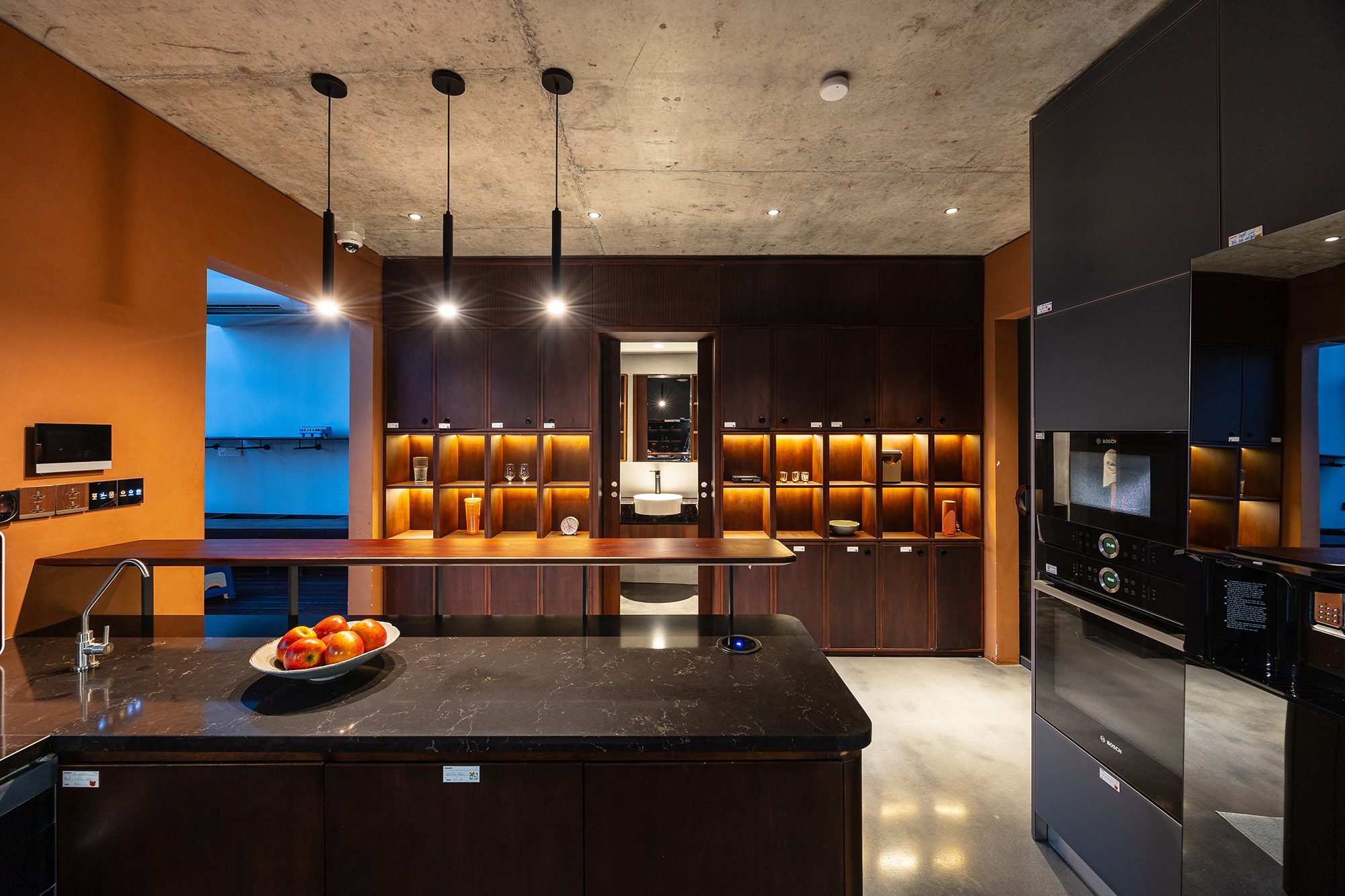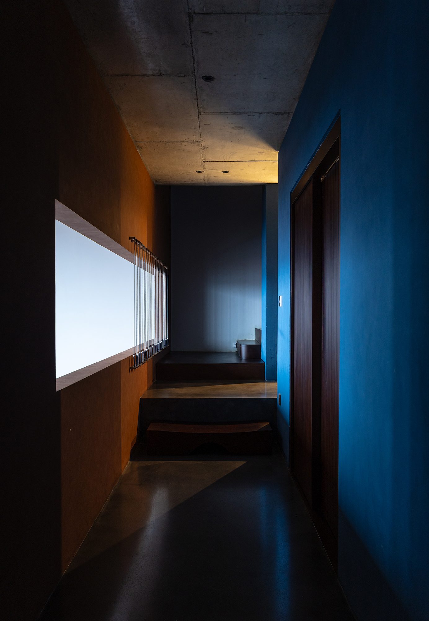Khu vực này được tổ chức thành khối tích lớn, khai thác khoảng thông tầng nhằm kết nối khối phòng ngủ tới khoảng sinh hoạt chung qua một hành lang mở. Từ bếp, hành lang hay thông tầng đều có thể quan sát và tương tác với nhau một cách mật thiết. Mặt tiền được xử lý bằng hai lớp bao che, gồm hệ kính và lam che nắng tự động, vừa đảm bảo tầm nhìn, vừa kiểm soát nhiệt độ, ánh sáng hiệu quả.