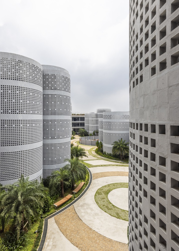 Với hình dạng hai vòng tròn bất đối xứng lồng vào nhau, mỗi giai đoạn xây dựng mang đến 35.000m2 không gian sống động và phong phú. Bên trong giai đoạn một, tầng trệt được dành riêng cho các hoạt động công cộng với cảnh quan “sân mây” độc đáo, được bao bọc bởi một cấu trúc tòa nhà rộng lớn và cực kỳ thoáng đãng.
