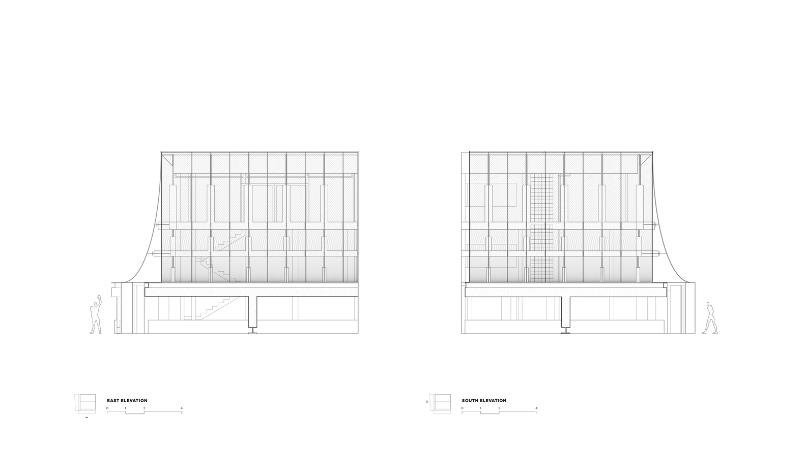 Khái niệm thiết kế trung tâm xoay quanh ý tưởng về một tấm màn che: một ranh giới mềm mại, nhiều lớp, làm trung gian giữa con phố sôi động và không gian nội thất ấm cúng, gần gũi. Lớp vỏ ngoài mới này bao gồm các tấm lưới kim loại mở rộng được hỗ trợ bởi kết cấu bê tông đúc sẵn và thép, tạo thành một lớp vỏ xốp cho phép luồng không khí, ánh sáng được lọc và cảm giác mờ đục và rộng mở thay đổi. Tại góc cua hẹp của công trình, tấm màn che mở ra để tạo thành một cử chỉ đô thị nhẹ nhàng – một ngưỡng cửa râm mát, hấp dẫn thu hút mọi người vào bên trong. Cử chỉ này biến tòa nhà thành một nét đô thị mềm mại, mang đến một góc thoáng khí, nhạy bén trong một khu phố đông đúc và sôi động.