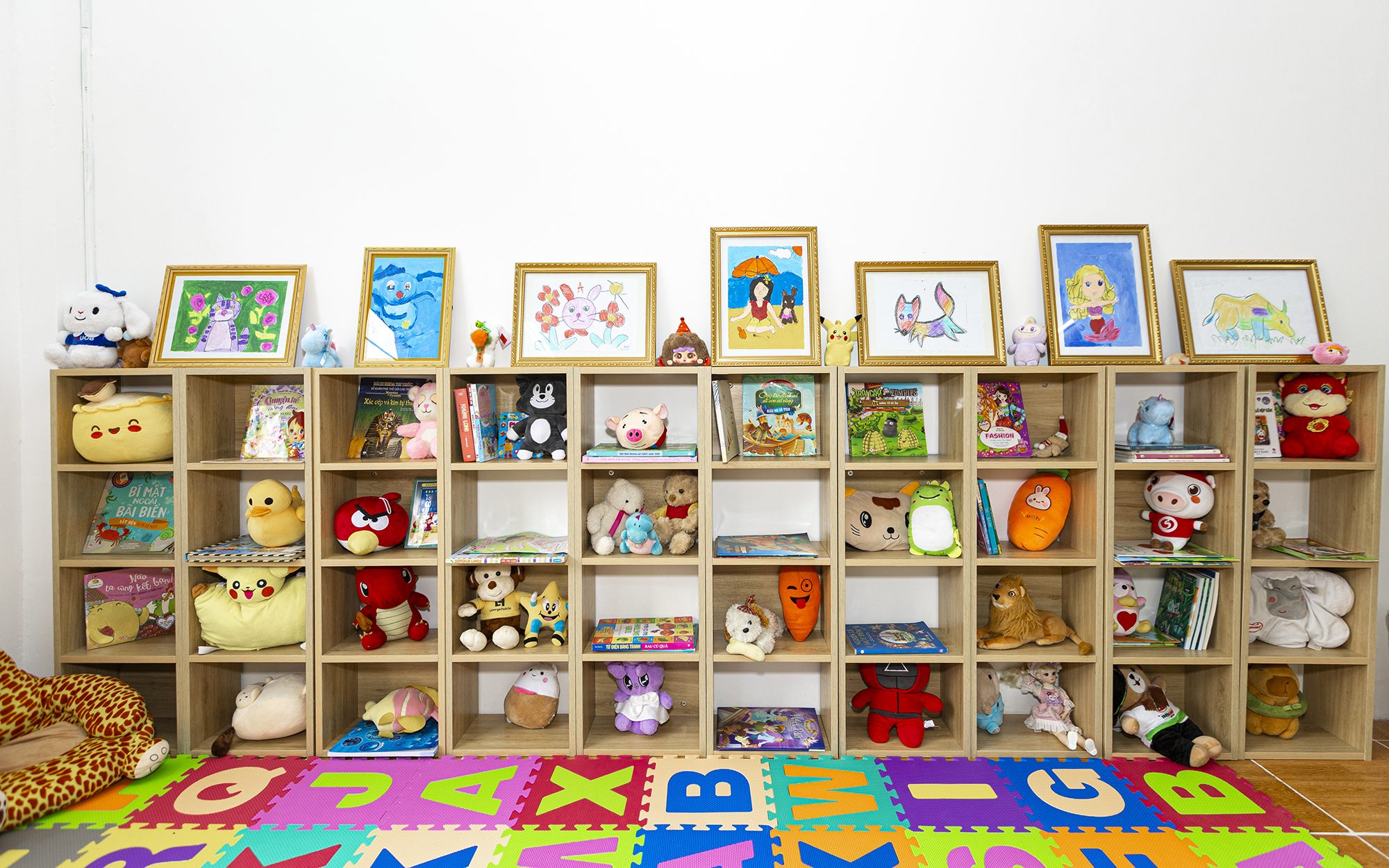 – Học tập sáng tạo và tương tác: Thư viện là một không gian đa chức năng, được thiết kế để tổ chức các hoạt động học tập sáng tạo ngoài giờ học chính khóa. Các em có thể tham gia vẽ tranh, tô màu, và các buổi workshop thủ công khác, giúp phát triển khả năng sáng tạo, kỹ năng vận động tinh và là một phương pháp biểu đạt cảm xúc hiệu quả, đặc biệt với những trẻ gặp khó khăn trong giao tiếp bằng lời nói.