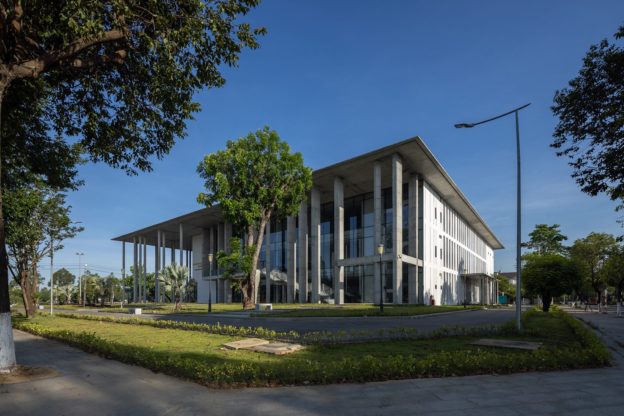 Thông qua ngôn ngữ kiến trúc đương đại kết hợp vật liệu và yếu tố bản địa, công trình mang đến hệ thống không gian mở có tính kết nối cao. Hàng rào được lược bỏ nhằm xóa nhòa khoảng cách giữa công trình hành chính và người dân, tạo cảm giác thân thiện và tiếp cận tự nhiên. Hệ thống cây xanh lâu năm được bảo tồn tối đa, biến toàn bộ khu vực thành một công viên mở cho cộng đồng.