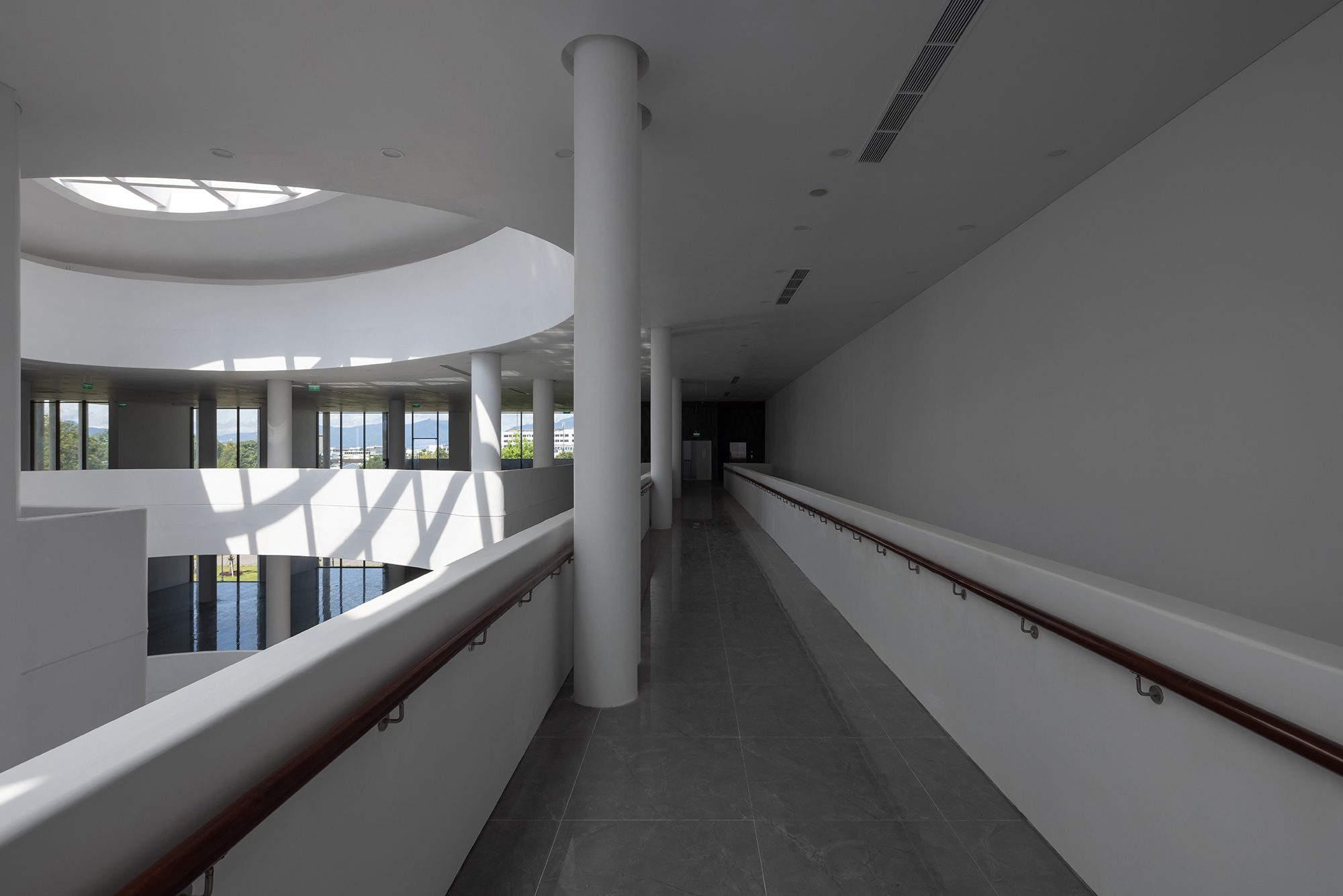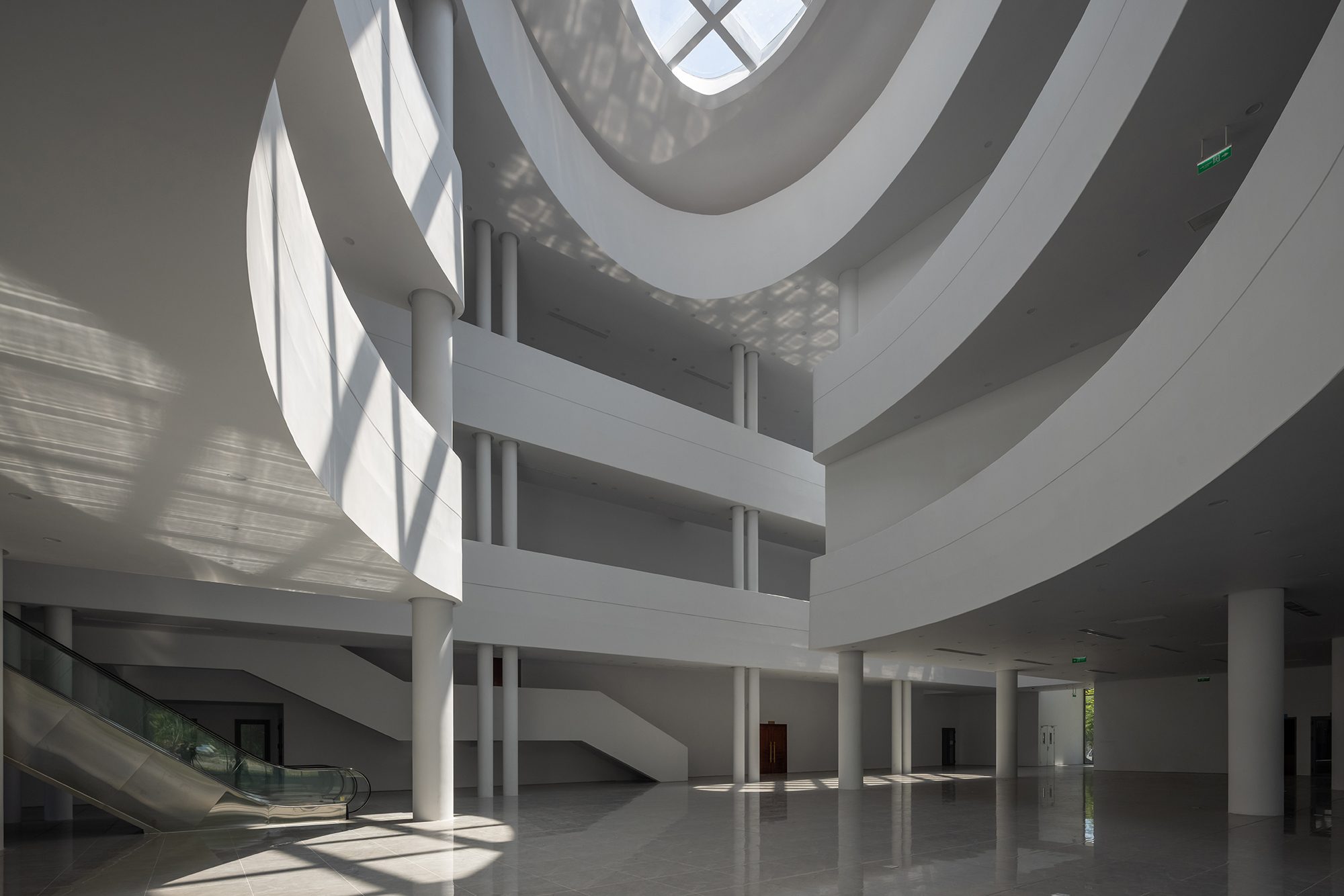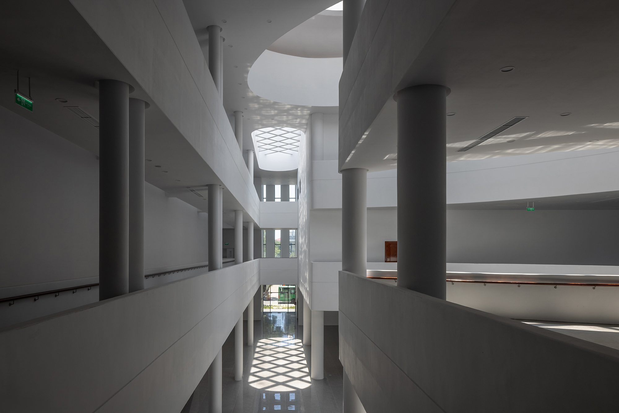 Khoảng thông tầng trung tâm không chỉ đóng vai trò điều hòa vi khí hậu tự nhiên mà còn tạo nên không gian chuyển tiếp tinh tế, phân tách ước lệ các khu chức năng khác nhau trong công trình.