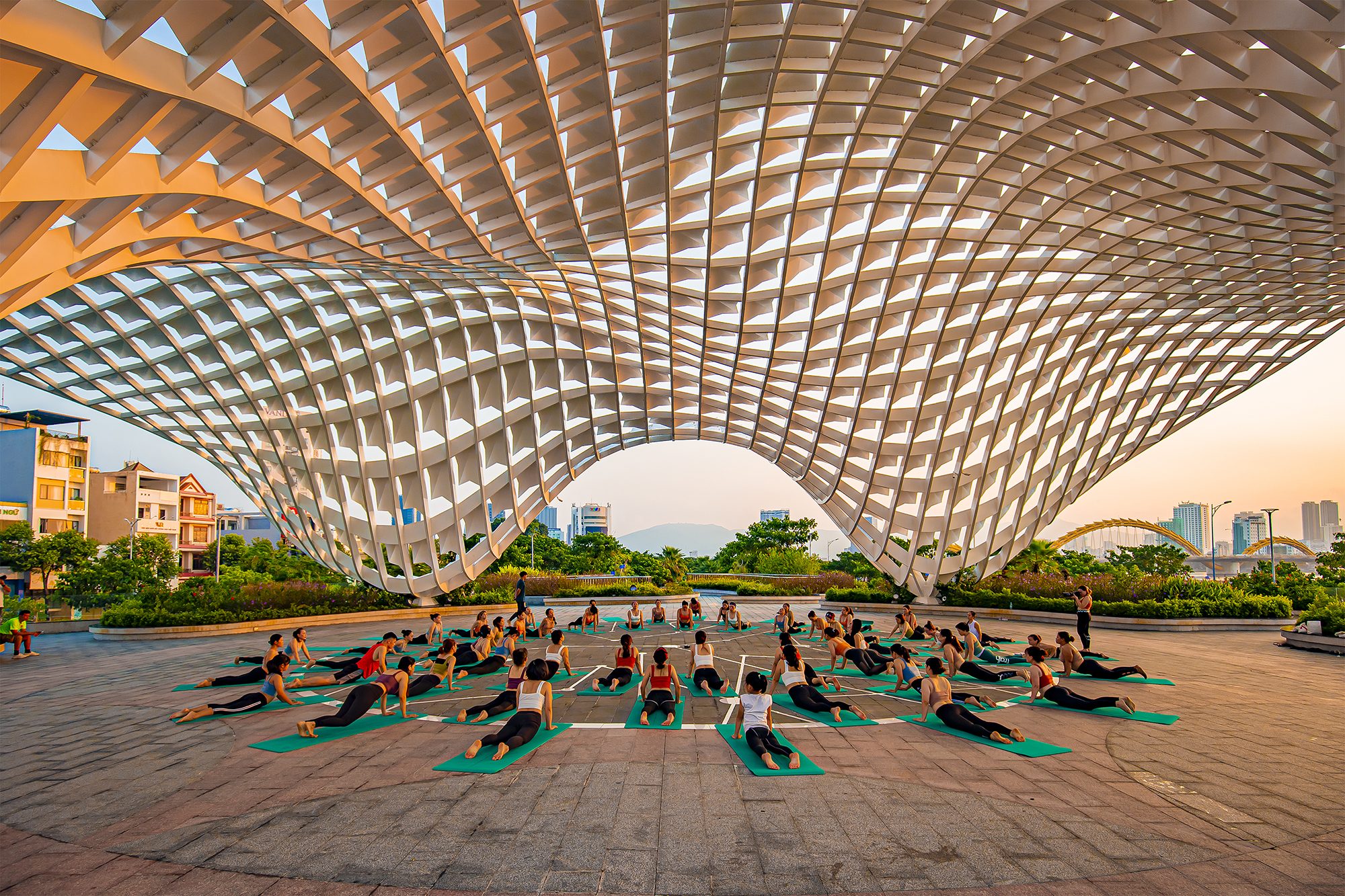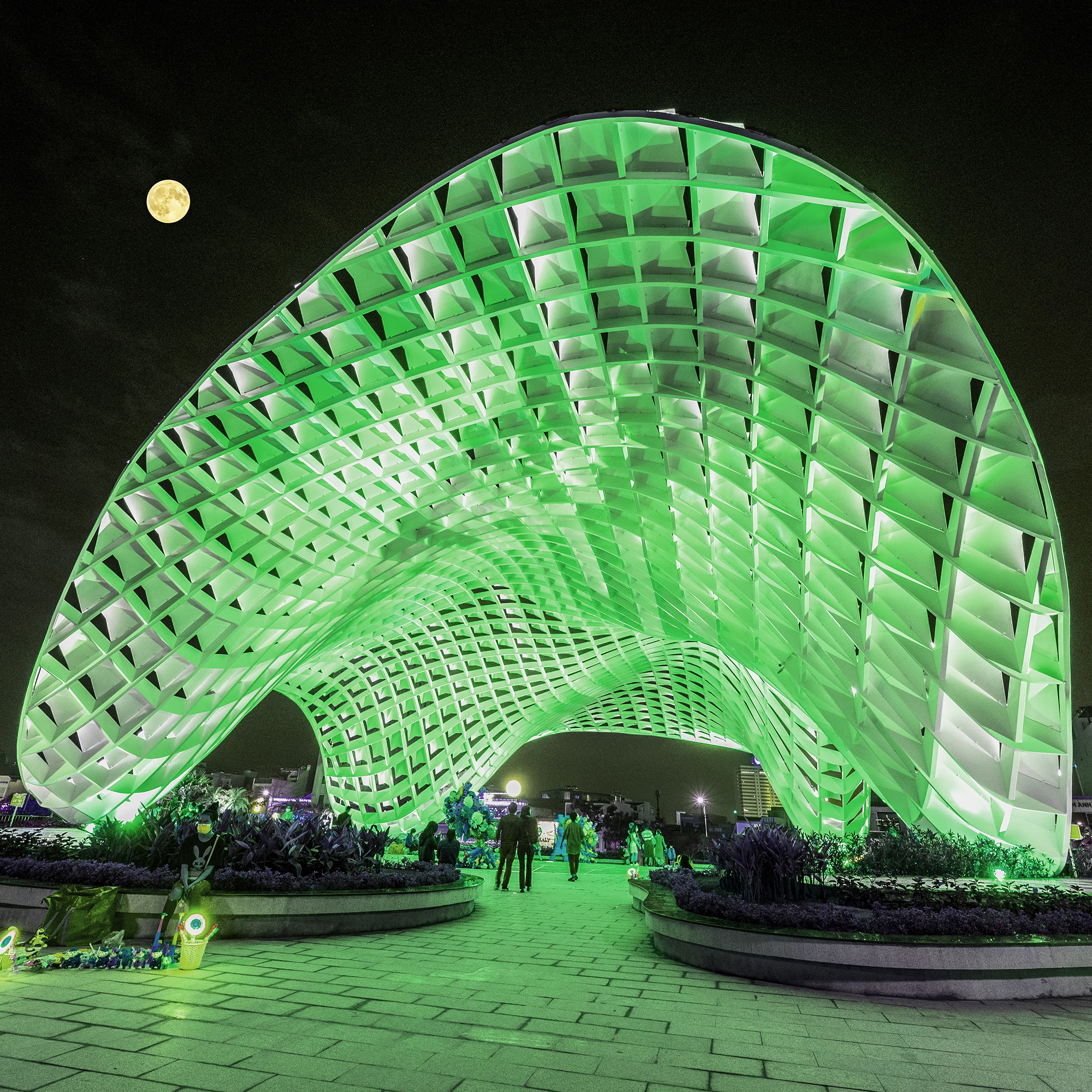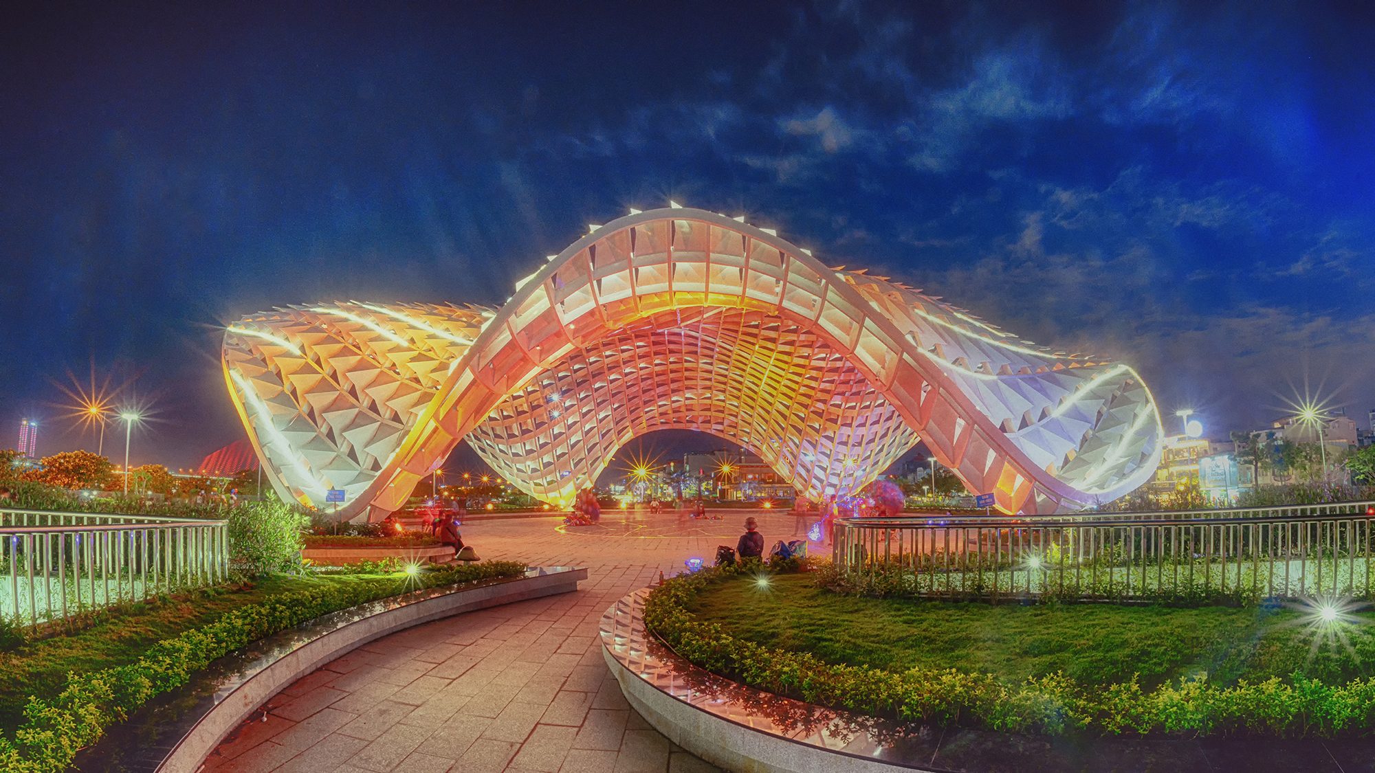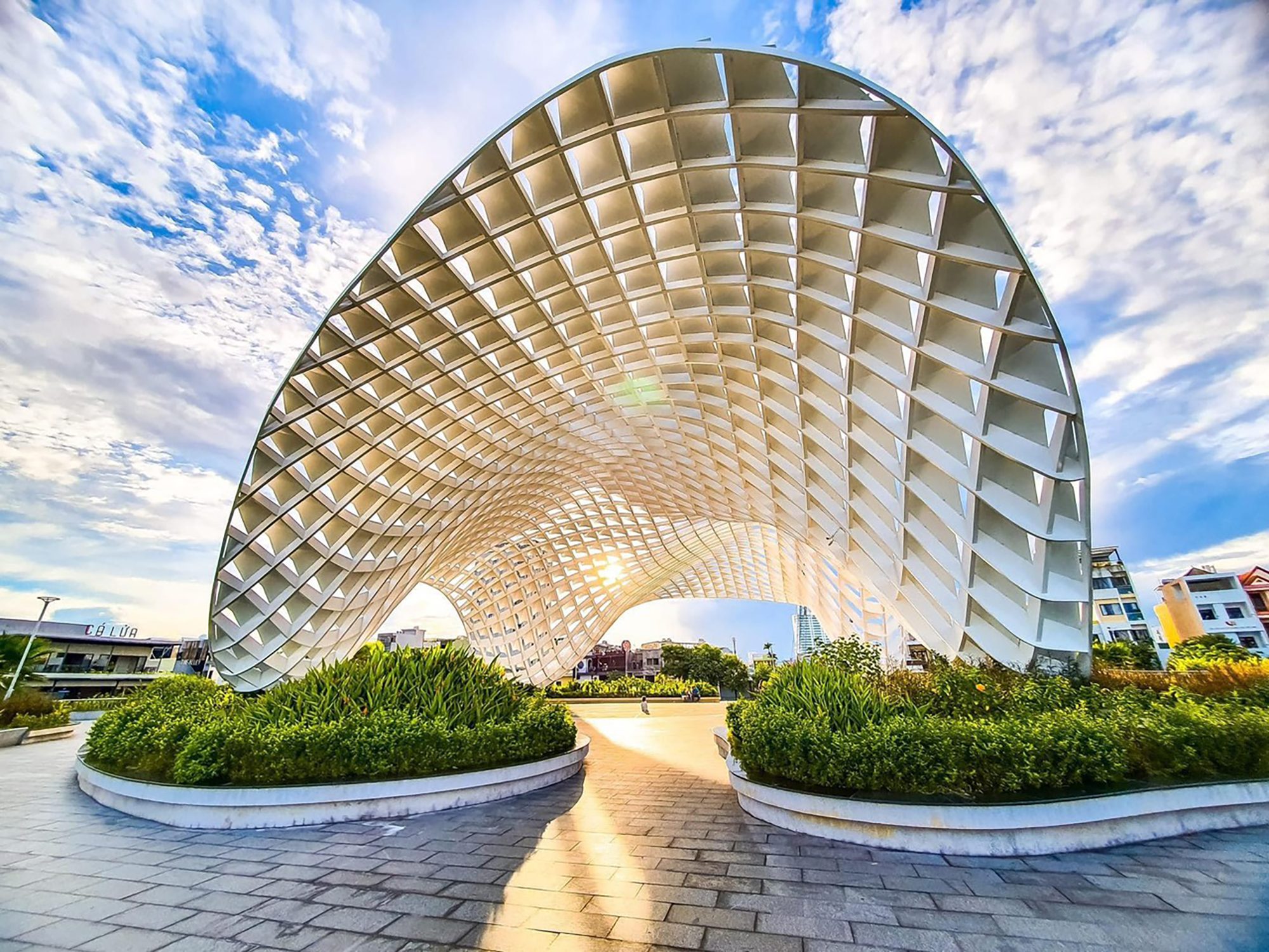 Không gian sinh hoạt cộng đồng, biểu diễn nghệ thuật đường phố ngoài trời với điểm nhấn là mái vòm cong lượn đa chiều được thiết kế với hình thức kiến trúc hiện đại, tạo điểm nhấn độc đáo không chỉ cho công viên mà cả khu vực.