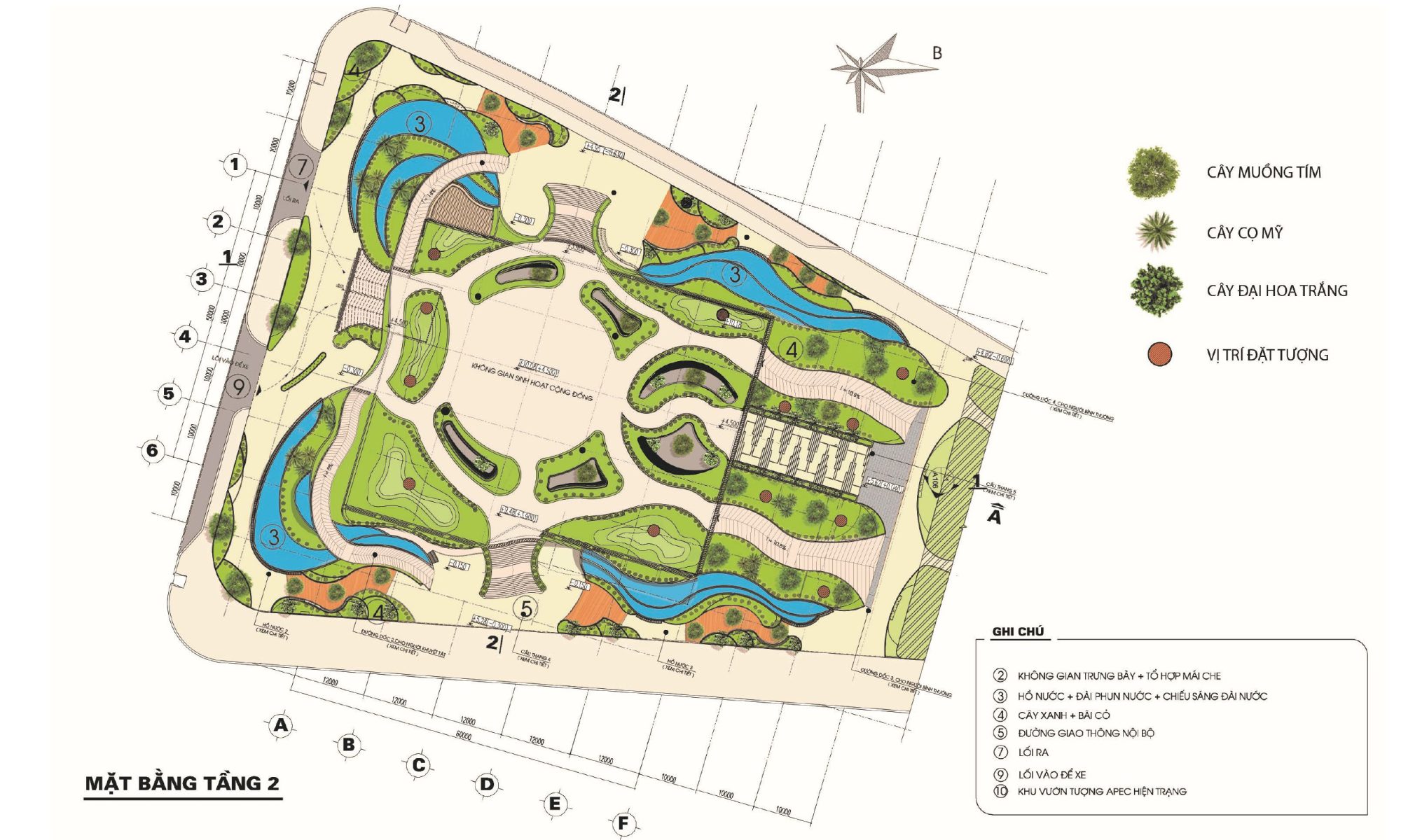 Các không gian cảnh quan, cây xanh đa dạng về cao độ, tạo ra không gian cảnh quan rất thú vị nhưng vẫn đảm bảo việc tiếp cận công trình của người khuyết tật. Mật độ xây dựng thấp, khoảng lùi vừa đủ để không gian cảnh quan hài hòa với khu vực xung quanh.