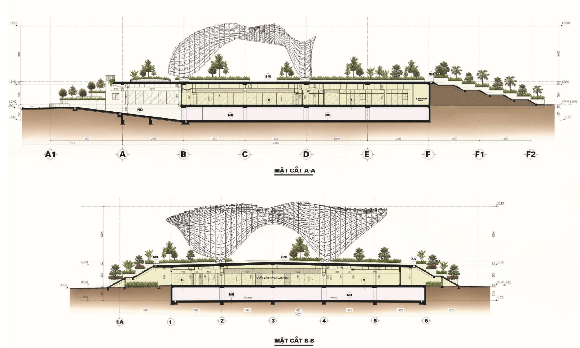 – Diện tích phần mái vòm (điểm nhấn kiến trúc chính): 815m2