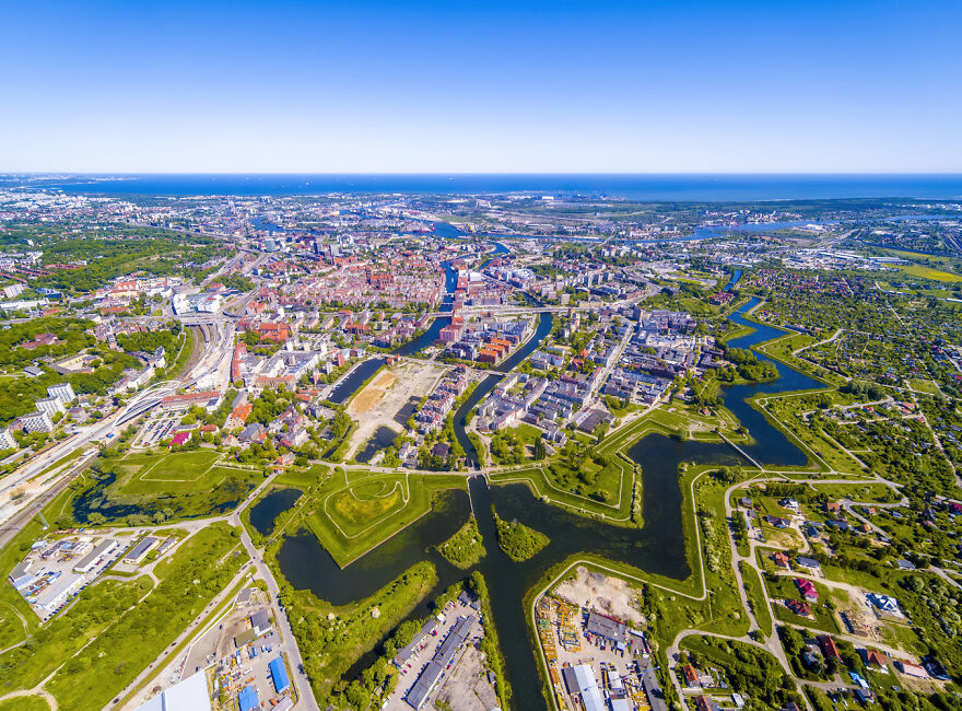 Trên hình là Gdansk – một thành phố lớn và cũng là thương cảng sầm uất của vùng biển Baltic. Nhìn từ trên cao có thể thấy các thành trì quân sự mà khi ở dưới mặt đất rất khó nhận ra.