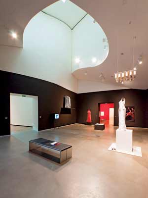 Phòng trưng bày nhỏ với ô lấy sáng trên cao. Phòng trưng bày trung tâm có chiều cao 22m.