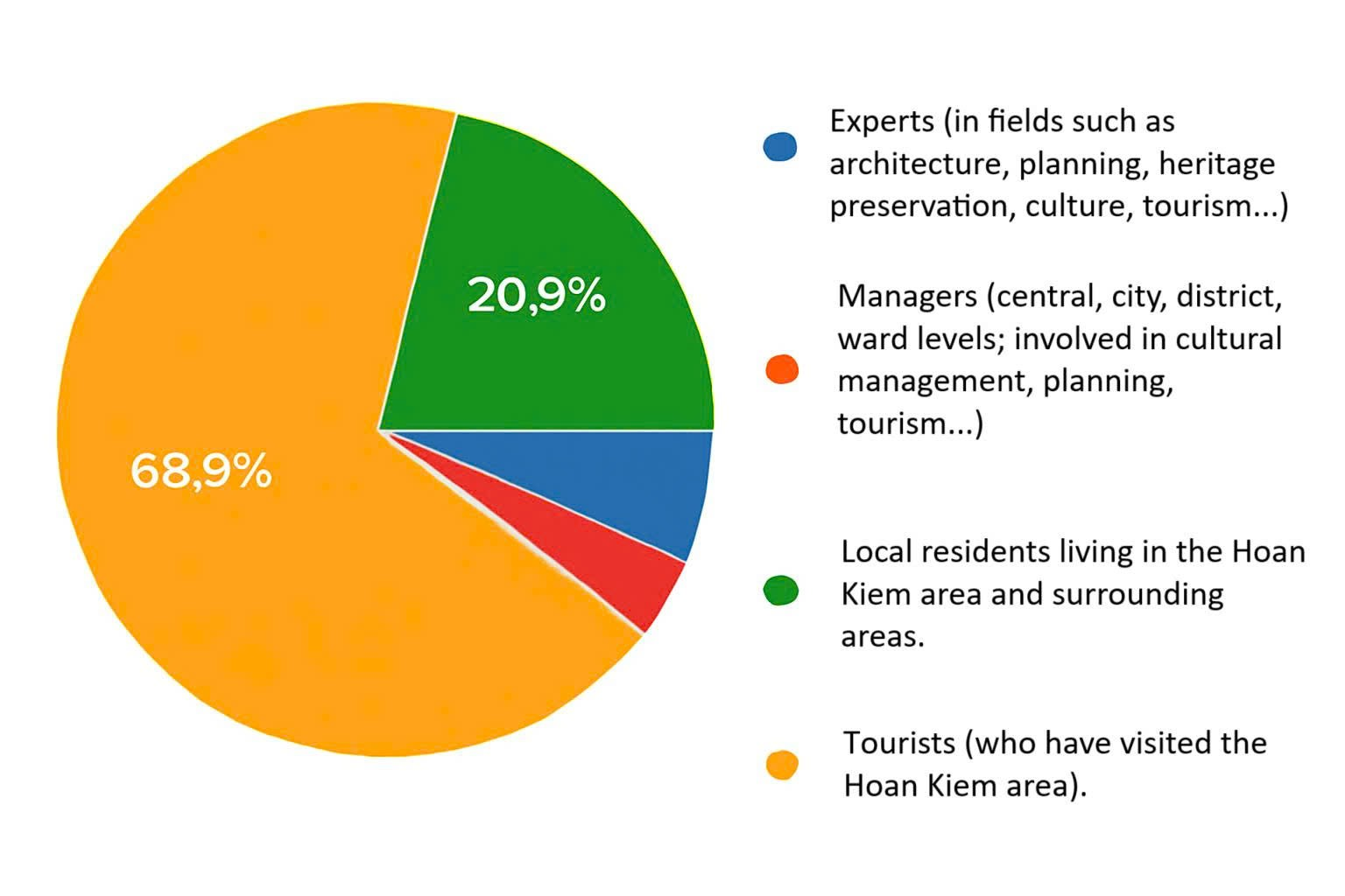 – Phỏng vấn cộng đồng: Thực hiện phỏng vấn cộng đồng với các nhóm đối tượng gồm: chuyên gia quy hoạch – bảo tồn, nhà quản lý đô thị, cư dân địa phương và khách du lịch. Mục tiêu nhằm thu thập góc nhìn đa chiều về giá trị, nhu cầu và định hướng phát triển không gian Hồ Hoàn Kiếm.