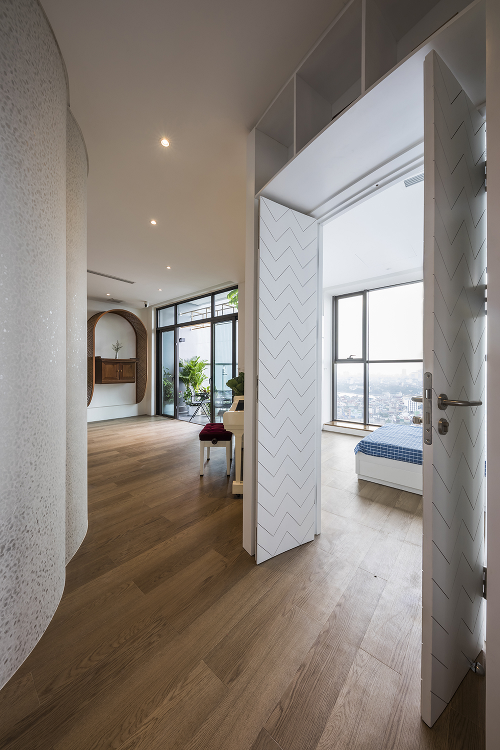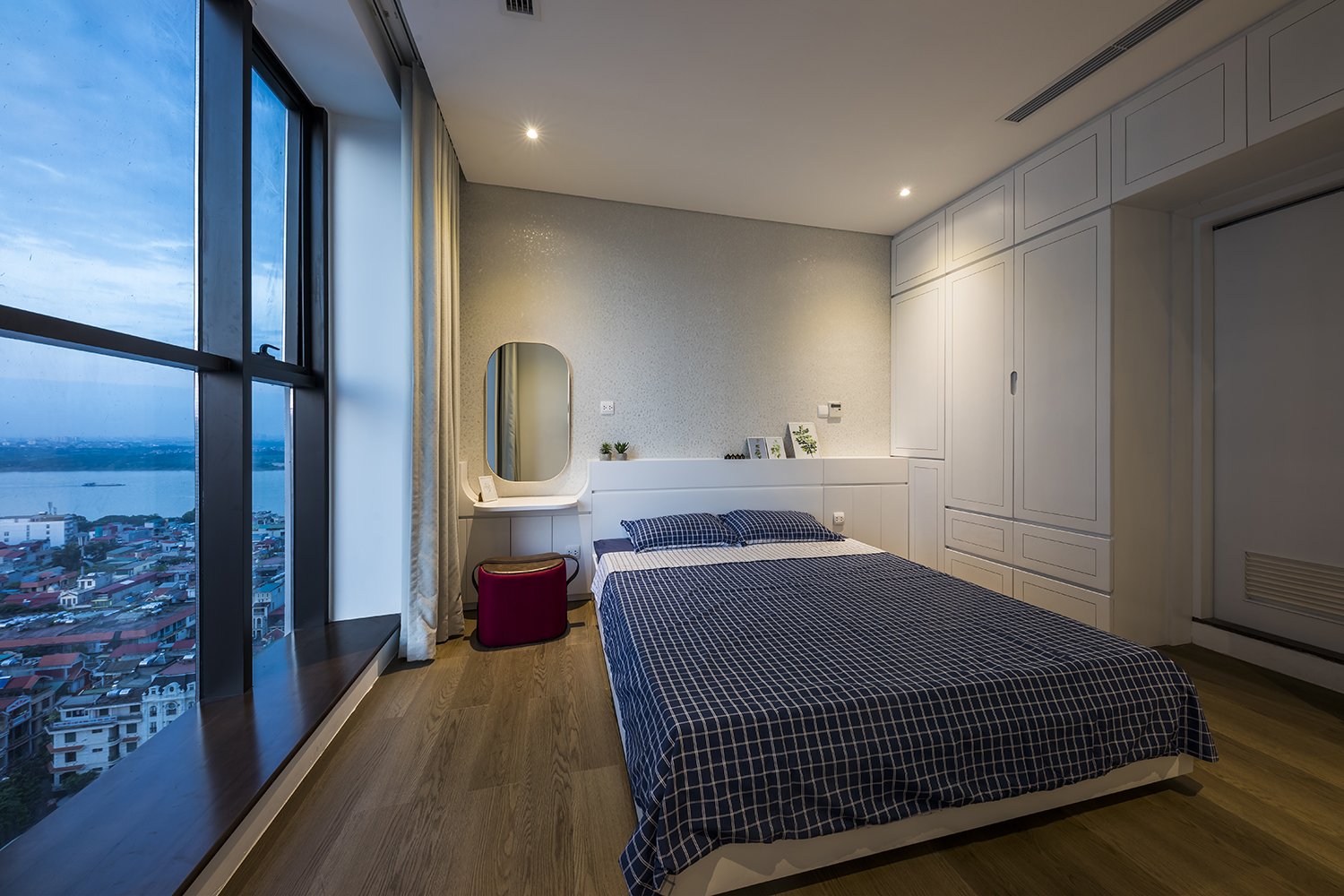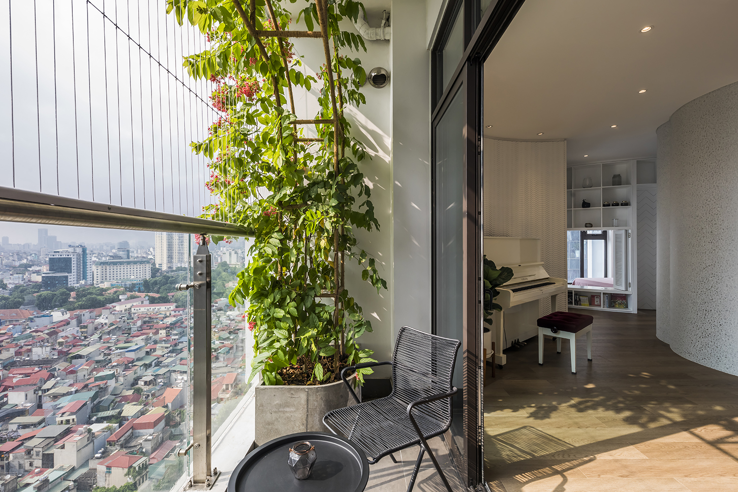 Hệ tủ công năng cong, các cửa sổ được thiết kế không chỉ để đáp ứng các công năng sử dụng mà còn giúp cho sự thông gió và chiếu sáng tư nhiên được tốt hơn. Chủ nhà đã có những phản hồi tích cực và hài lòng về không gian sống mới của gia đình sau khi chuyển tới sống. Thông qua dự án này, chúng tôi muốn mang lại một giải pháp chú trọng vào sự kết nối của các không gian, các thành viên trong gia đình với tự nhiên – một yếu tố quan trọng nhưng thường bị bỏ quên trong những thiết kế hiện tại.