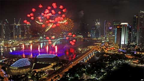 Pháo hoa chiếu sáng tháp đồng hồ Big Ben