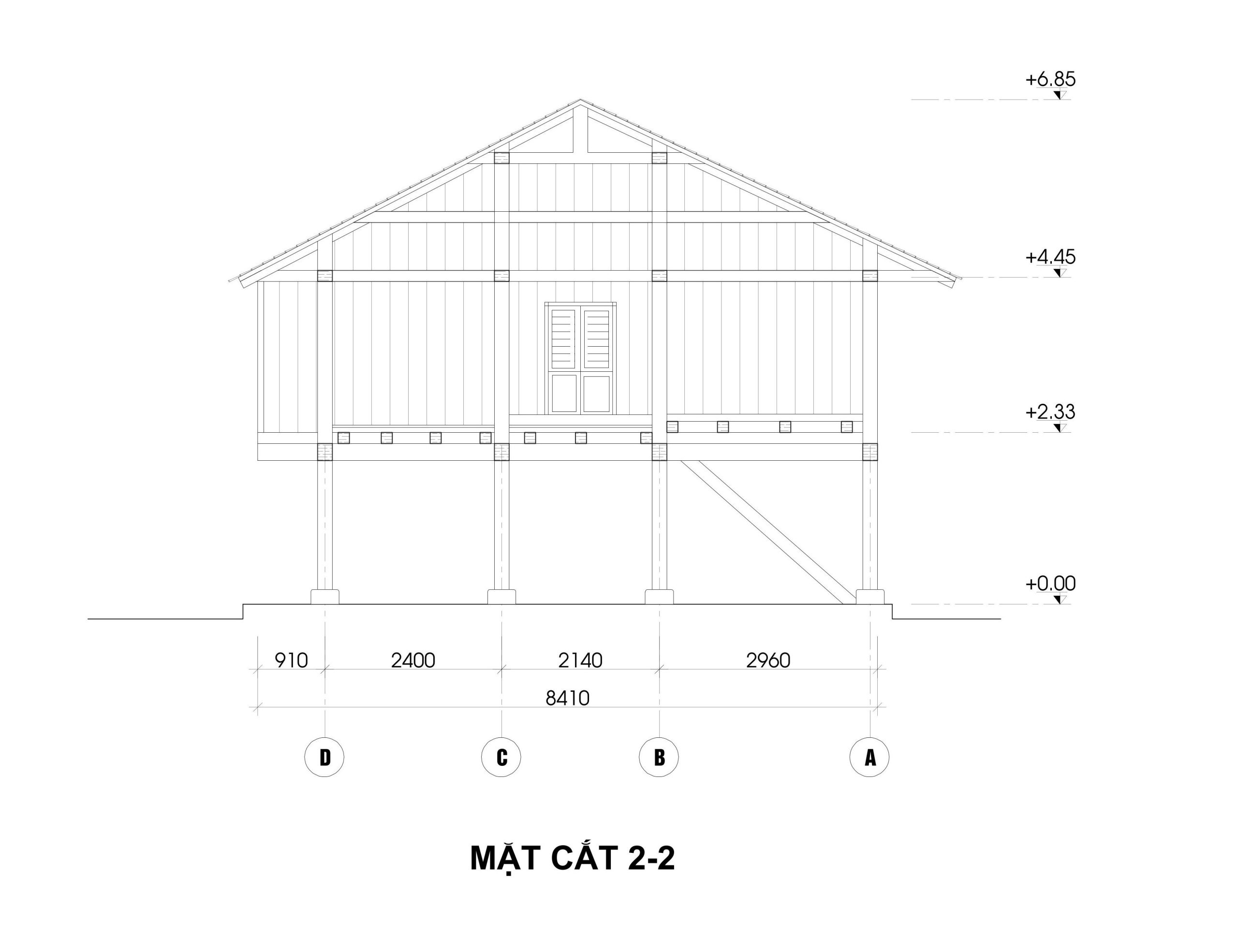 - Giữ lại hình thức nhà sàn, bốn mái dốc đặc trưng.