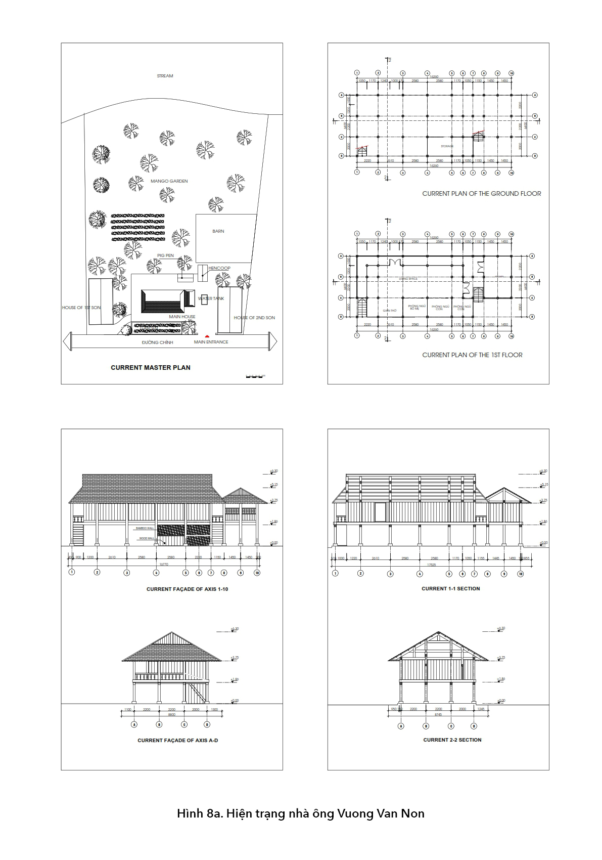 Các phương án cải tạo đều dựa trên các định hướng cải tạo kiến trúc nhà ở truyền thống theo tiếp cận bền vững đã đề xuất ở mục 5.4. Tuy nhiên nhà ông Vương Văn Nón có diện tích sử dụng nhà chính làm homestay là lớn nhất do các con đã có nhà riêng; nhà ông Mào Văn Hơn được cải tạo một phần thành homestay, ngôi nhà phụ thành cửa hàng bán đồ lưu niệm là sản vật địa phương; nhà bà Nguyễn Thị Hương được cải tạo để sử dụng một phần làm home stay.