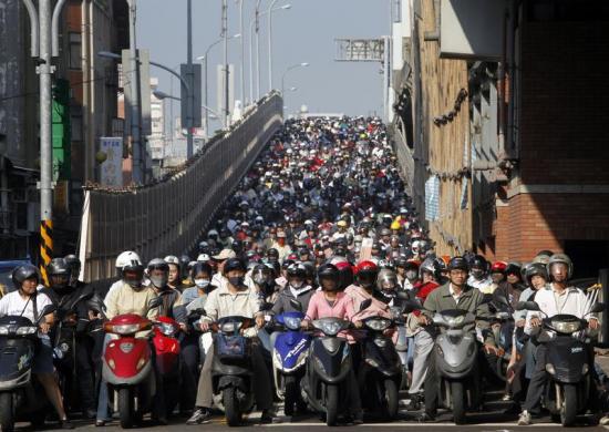 Giao thông tắc nghẽn tại một giao lộ trong giờ cao điểm tại Đài Bắc, Đài Loan, hôm 29/10/2009.