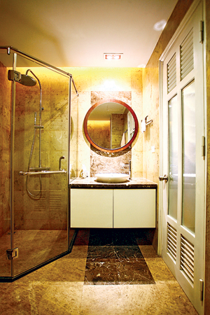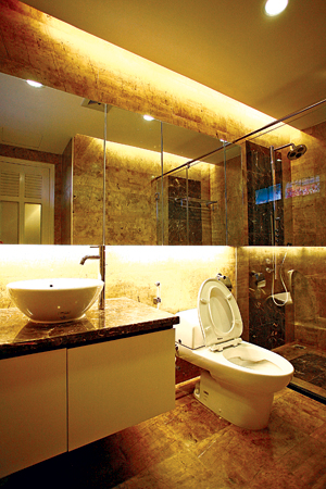Yếu tố chiếu sáng trong toàn căn hộ được chú ý và đầu tư đúng mức, kể cả trong phòng vệ sinh. Điều đó đã làm không gian cũng như đồ đạc nội thất tăng yếu tố thẩm mỹ lên đáng kể.