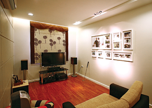 Chủ nhà là người thích nghe nhạc, và điều đó đã khiến anh không ngần ngại hy sinh một phòng ngủ (phòng phía ngoài) làm phòng nghe nhạc và giao nhiệm vụ thiết kế cho kiến trúc sư.