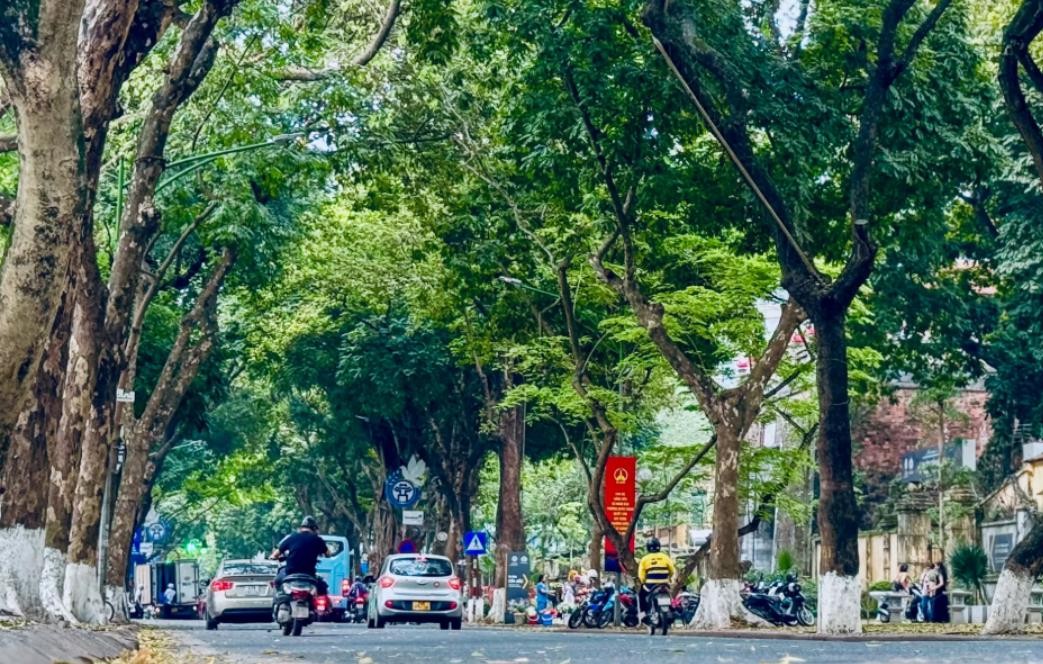 Tại Hà Nội, hệ thống cây xanh đường phố, công viên và hồ nước như Hồ Gươm, Hồ Tây, công viên Thống Nhất, công viên Cầu Giấy… đóng vai trò quan trọng trong điều hòa vi khí hậu và tạo không gian công cộng cho người dân. Các hàng cây xanh dọc theo các trục phố chính không chỉ góp phần giảm nhiệt và cải thiện chất lượng không khí, mà còn tạo điều kiện thuận lợi cho đi bộ và các hoạt động ngoài trời. Tuy nhiên, trước áp lực đô thị hóa nhanh, diện tích cây xanh bình quân đầu người tại Hà Nội vẫn thấp hơn đáng kể so với khuyến nghị của Tổ chức Y tế Thế giới, 9 m²/người, đồng thời phân bố chưa đồng đều giữa các khu vực trung tâm và khu vực phát triển mới, đặt ra yêu cầu cấp thiết về bảo vệ và mở rộng không gian xanh đô thị. (Hình 3)
