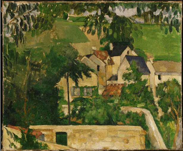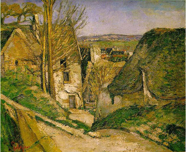Năm 1872-73 hai người vẽ cùng nhau ở Auvers-sur-Oise, phía Bắc Paris, và từ Pissarro, Cézanne bắt đầu chuộng các view gần của những tòa nhà, đan cài phía trước là một lưới những cành cây, như trong bức La maison du pendu, tinh tế và rực sáng mặc cho sự đối lập gay gắt giữa nhà với đá, cùng với lối dẫn vào sâu trong quang cảnh khá là rối rắm, bằng một con đường dốc và quanh co.