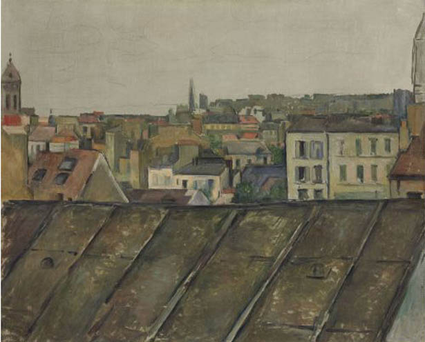 Một thập kỷ sau đó, trong tác phẩm Les Toits de Paris (Những mái nhà của Paris), Cézanne vẽ lại quang cảnh nhìn từ studio tầng Năm của ông ở Montparnasse với ba dải ngang rõ rệt để tạo ra ấn tượng chiều sâu không gian: một mái nhà màu kẽm to lớn ngay trước mắt, sau đó là một loạt mái đỏ, xen kẽ mái trắng, beige và hạt dẻ; cuối cùng là một bầu trời nặng nề. Với Cézanne, Kinh đô ánh sáng hồi thế kỷ 19 thật ảm đạm, khác hoàn toàn với sự lấp lánh trong tác phẩm Monet hay Pissarro với một Paris nhộn nhịp trên những cây cầu và các đại lộ.