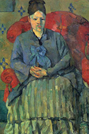 Chẳng ngạc nhiên gì khi Vollard không cảm thấy thoải mái: ông được ra lệnh phải “ngồi yên như một quả táo”, một công việc chỉ có người đẹp tóc nâu Hortense Fiquet với vẻ phớt tỉnh lạnh lùng mới làm được. Fiquet sau này, vào tuổi trung niên, trở thành Bà Cézanne (bà vợ từng được ông mô tả là “vợ tôi chỉ quan tâm đến Thụy Sĩ và nước chanh”). Trông chán nản nhưng ấn tượng, bà cũng như những quả táo trong các bức tĩnh vật và núi Mont St Victoire trong các bức phong cảnh, một người mẫu không thay đổi mà Cézanne dùng để định nghĩa lại nghệ thuật vẽ chân dung. Một ví dụ ở đây chính là tác phẩm Madame Cézanne à la jupe rayée trong bộ sưu tập Boston: Hortense như một motif phong cảnh được nhập vào cấu trúc của một cảnh sinh hoạt gia đình: vẽ một thế giới ngay vào chính thế giới đó. “Đấy là chiếc ghế tựa màu đỏ đầu tiên và độc đáo nhất từng được vẽ,” Rainer Maria Rilke viết. “Nội thất của bức tranh run rẩy, lên cao, đổ xuống ngay vào chính nó và không hề có một phần nào không chuyển động.”
