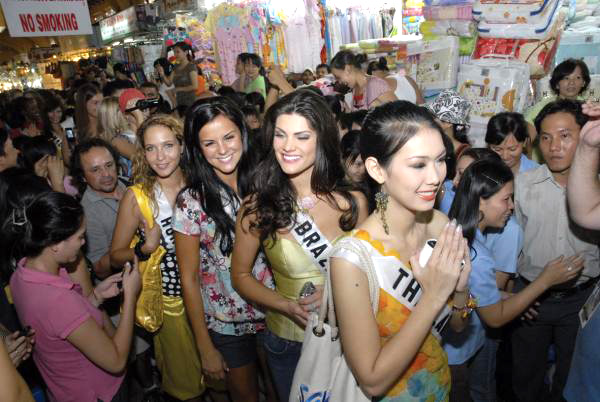Những bông hoa của cuộc thi Miss Universe 2008 làm rộn ràng thêm không khí của chợ Bến Thành