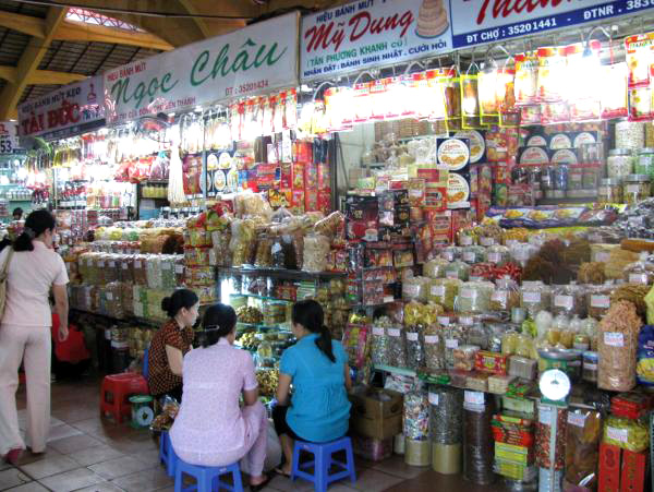 Ngoài ra, dọc theo các hành lang bao quanh nhà lồng chợ là những gian hàng bày bán đủ các loại mặt hàng tiêu dùng phục vụ khách du lịch, đặc biệt là hàng lưu niệm, quần áo may sẵn, vải tơ tằm, thủ công mỹ nghệ, tranh thêu, thổ cẩm…