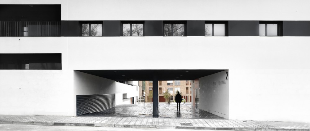 Khởi điểm ban đầu của dự án nằm trên đường Canal de Tauste bắt đầu từ việc phân tích sự kết nối giữa các không gian riêng và công cộng. Được thiết kế tuân theo quy định như một khối gồm nhiều công trình xoay quanh sân trong, sơ đồ tổ chức của công trình đuợc hình thành cho một công trình đã hiện hữu tại phía nam và một công trình mới, với mặt bằng hình chữ “U”. Hình thức của không gian cộng đồng bên trong công trình mang lại những kết nối với các công trình hiện hữu xung quanh và đồng thời cung cấp các không gian chuyển tiếp lôi cuốn. Nó cũng cải thiện các điều kiện nhà ở, vốn bị giới hạn do đặc điểm xã hội, mang lại cho chúng một không gian bên ngoài để trò chuyện và gặp gỡ.