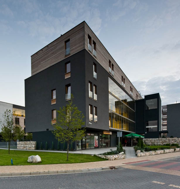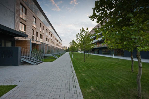 Công trình dân cư tại Katowice, Ba Lan do công ty kiến trúc Medusagroup thiết kế đã được hoàn thành trong giai đoạn từ năm 2006 đến 2009 với diện tích khu đất là 8.914 m2. Hai khối công trình dân cư được thiết kế theo dạng công trình hành lang được bố trí song song với nhau với một trục giao thông trung tâm nội khu ngay chính giữa. Và khối công trình thứ 3 là chung cư. Nhóm thiết kế khi thiết kế công trình đã có tham vọng là phá vỡ đi những cảm nhận không tốt của cư dân cho thể loại công trình này tại Ba Lan.
