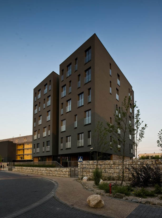 Công trình dân cư tại Katowice, Ba Lan do công ty kiến trúc Medusagroup thiết kế đã được hoàn thành trong giai đoạn từ năm 2006 đến 2009 với diện tích khu đất là 8.914 m2. Hai khối công trình dân cư được thiết kế theo dạng công trình hành lang được bố trí song song với nhau với một trục giao thông trung tâm nội khu ngay chính giữa. Và khối công trình thứ 3 là chung cư. Nhóm thiết kế khi thiết kế công trình đã có tham vọng là phá vỡ đi những cảm nhận không tốt của cư dân cho thể loại công trình này tại Ba Lan.