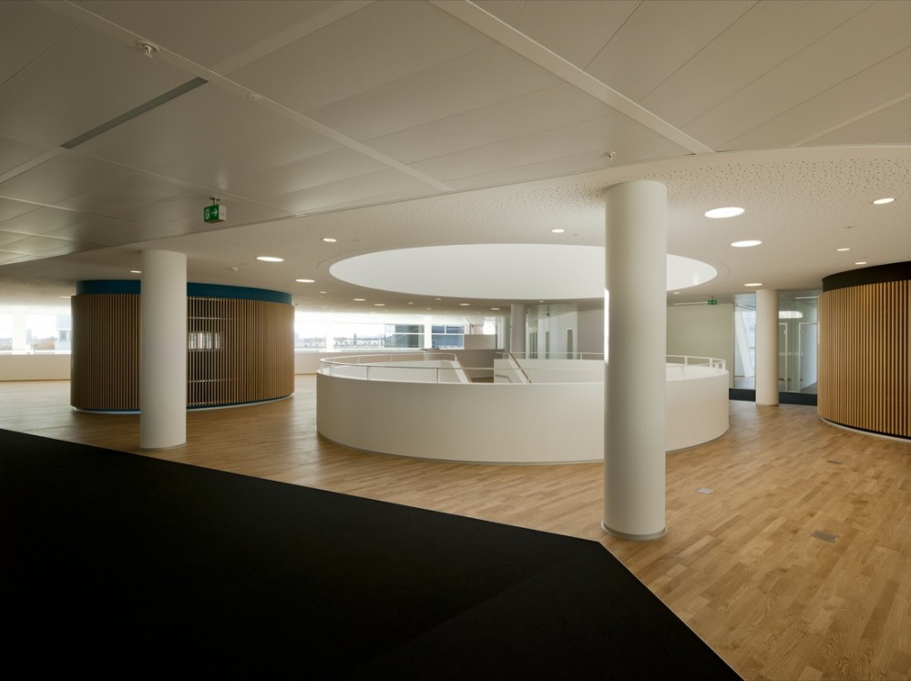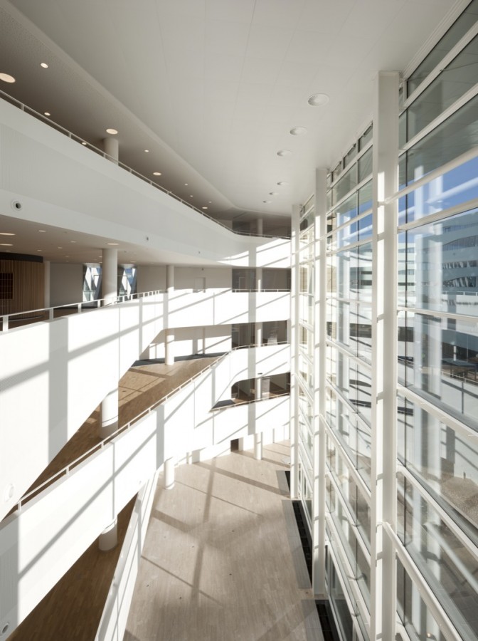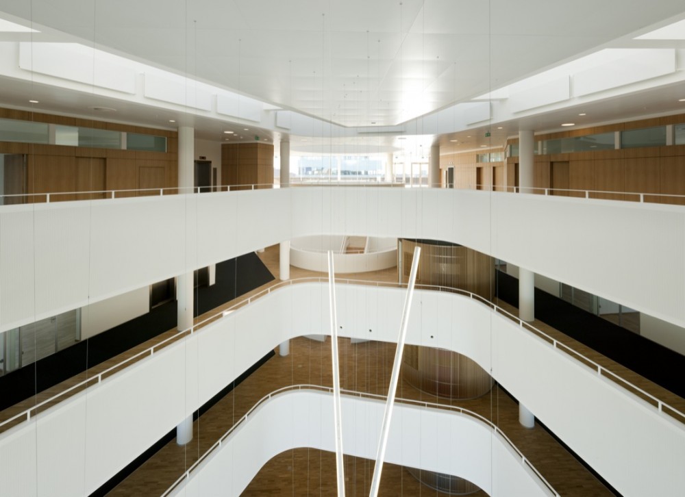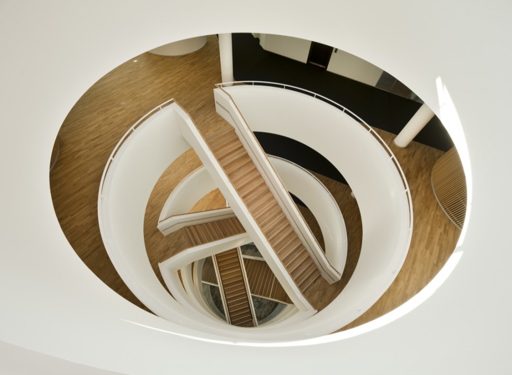 Bên trong, công trình thể hiện sự nhẹ nhàng về không gian và sự thoáng đãng với một hệ thống kết cấu linh hoạt nhằm khuyến khích cho việc hình thành các buổi nhóm họp tự do, thoải mái, và đồng thời khuyến khích sự chia sẽ kiến thức với nhau. Một không gian năng động được làm nổi trội hơn bằng sự phức tạp cao và những đổi mới sáng tạo của thiết kế bên ngoài công trình.