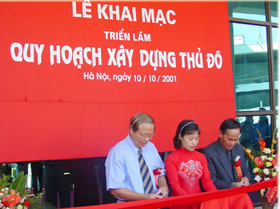 - Ảnh bên : Ông Hoàng Văn Nghiên, nguyên Chủ tịch TP cắt băng khai mạc Triển lãm Quy hoạch Thủ đô ngày 10-10-2001. (Ảnh: HanoiData)