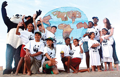 - Ảnh bên: Các thành viên của Quỹ Quốc tế bảo vệ thiên nhiên (WWF) đứng bên mô hình Trái đất nhằm gửi thông điệp kêu gọi thiết lập một nghị định thư mới chống biến đổi khí hậu.