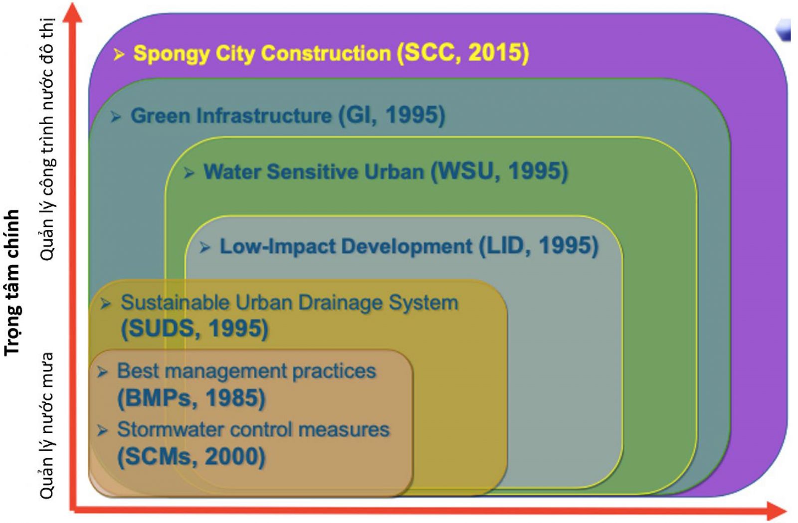 Các mô hình như Best Management Practices (BMPs), Low-Impact Development (LID), Sustainable Urban Drainage Systems (SUDS) và Water Sensitive Urban Design (WSUD) … đã tạo nền tảng cho sự phát triển Thành phố bọt biển (SPC) tại Trung Quốc (Hình 1).