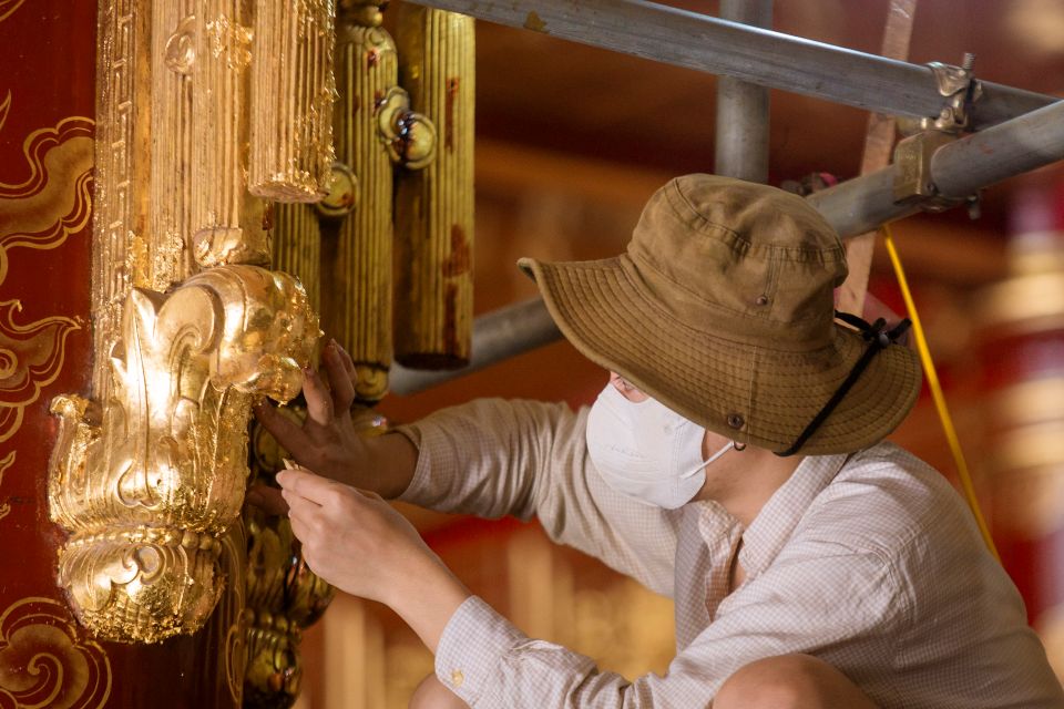 Không phải ngẫu nhiên mà Điện Thái Hòa trở thành công trình Di sản đầu tiên tại Việt Nam đạt chứng nhận công trình xanh LOTUS. Đây là kết quả của một quá trình trùng tu kéo dài hơn ba năm, từ tháng 11/2021 đến tháng 11/2024, với sự phối hợp chặt chẽ giữa Trung tâm Bảo tồn Di tích Cố đô Huế (HMCC) và các chuyên gia bảo tồn trong nước, quốc tế.