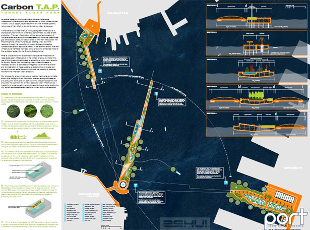Giới thiệu dự án Carbon T.A.P (Tunnel Algae Park) của nhóm kiến trúc sư Andrew Moddrell và Christopher Marcinkoski của công ty kiến trúc PORT. Đây là một dự án rất sáng tạo, dựa trên kết hợp ý tưởng khoa học xanh với ý tưởng kiến trúc. Đây là dự án đạt giải nhất cuộc thi WPA 2.0 năm 2009 (WPA 2.0 – Working Public Architecture là một cuộc thi thiết kế nhằm tìm kiếm những đề xuất sáng tạo và có tính ứng dụng liên quan đến cơ sở hạ tầng trong đô thị của Hoa Kỳ.)