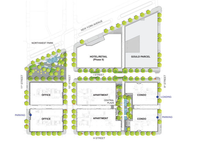 Công viên Northwest sẽ là phần bổ sung trang nhã và đầy sức sống cho khu vực thương mại thành phố Washington DC. Khu vực này sẽ đáp ứng được vị trí đắc địa dọc theo trục đại lộ New York bằng cách tạo sự kết nối trực tiếp giữa quảng trường Mount Vernon và Nhà Trắng. Điểm nhấn trọng tâm cua công viên chính là những vòi phun nước vốn định hình nên cảm giác tiếp cận với công viên bằng âm thanh của nước chảy và góc nhìn phối cảnh rộng rãi đến khu vực dân cư và lối vào Central Plaza. Tại hai bên của các vòi phun nước, hai khu vực được bố trí với nhiều ghế ngồi đa dạng ngay bên dưới những bóng râm mát của cây xanh.